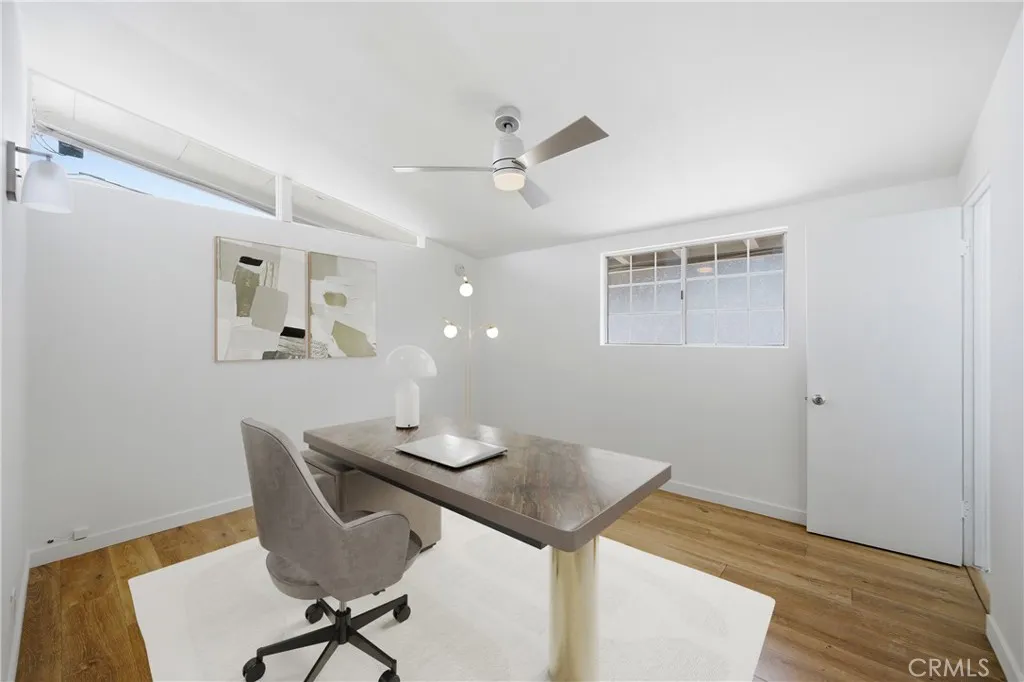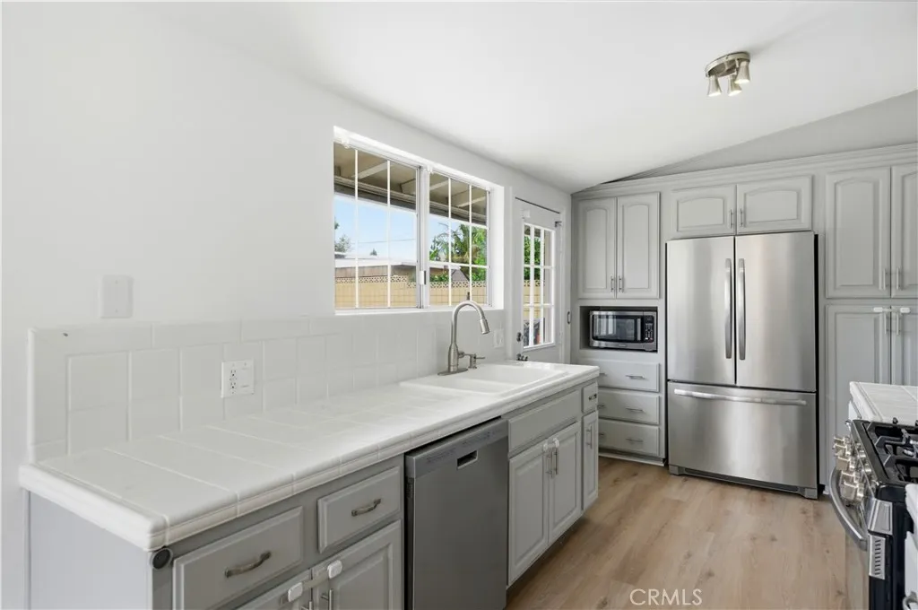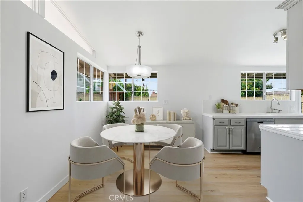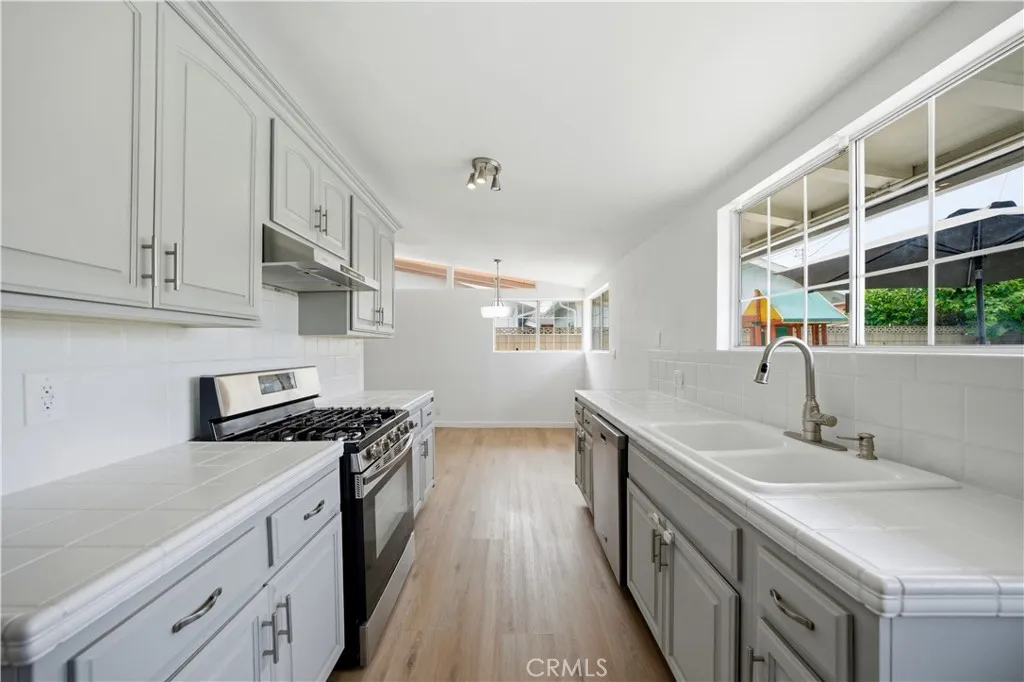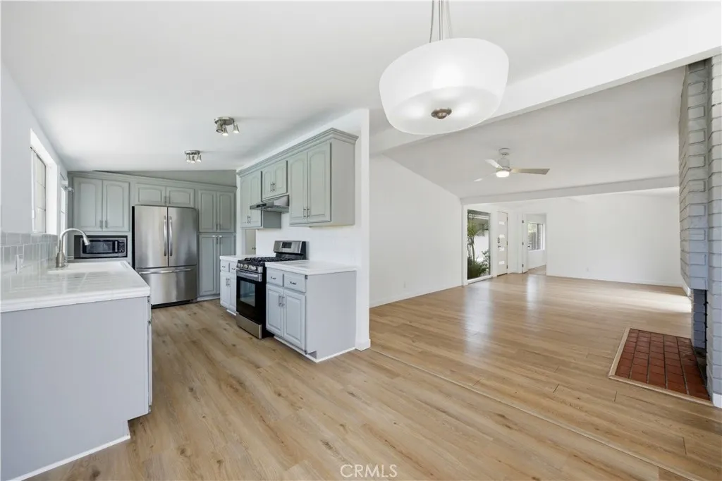 Discover the perfect blend of timeless design and modern comfort in this stunning mid-century modern gem, nestled in a serene cul-de-sac in Garden Grove. This single-level, 4-bedroom, 2.5-bath home boasts 1,621 square feet of thoughtfully designed living space on an expansive 7,200+ sq. ft. lot. Step inside to find sleek new laminate flooring, abundant natural light streaming through dual-pane windows and mid century window-lettes along the ceiling. A cozy brick fireplace anchors the living and dining area. The skylights add an extra touch of warmth, creating an inviting atmosphere for gatherings or quiet evenings at home. The updated kitchen is a chefs dream with expanded cabinetry and featuring stainless steel appliances with ample room to whip up your favorite meals. Outside, the backyard is your private oasiscomplete with a sparkling remodeled pool (with a classic diving board!), a swing-set, and even a dedicated dog run. Whether youre hosting summer pool parties or enjoying a peaceful morning coffee, this outdoor space has it all. The front of the home boasts a courtyard style entryway as well with a detached garage adjacent. Sustainability meets convenience with Tesla solar panels and whole house battery (fully paid off), plus a Tesla charging station in the detached garage. Central air and heating ensure year-round comfort, while the home's proximity to Magnolia Parkjust a mile awayoffers access to lush greenery and recreational activities. This home truly has something for everyone. Dont miss your chance to capture a piece of mid-century modern living!