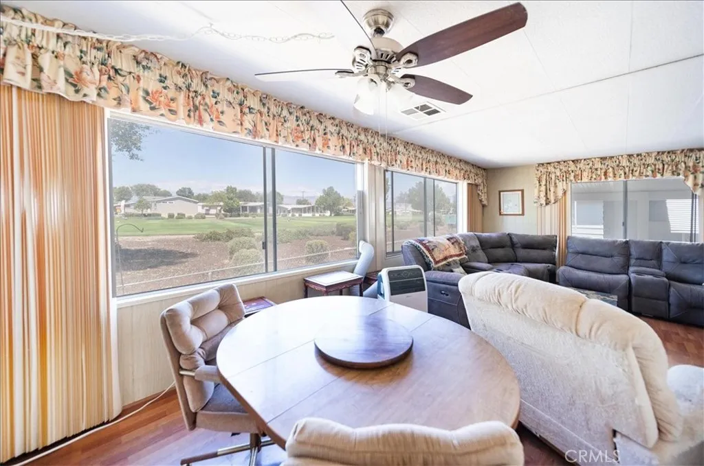 LOCATION! LOCATION! LOCATION! Welcome to a rare opportunity in the desirable 55+ resort community of The Lakes at Hemet West, a luxury golf course neighborhood known for its scenic beauty and vibrant lifestyle. This 2-bedroom, 2-bath mobile home, sits right on the golf course, and offers just under 1,400 square feet of living space. It is full of potential, making it an exceptional value for buyers looking to customize or invest. The spacious floor plan includes a large living room, formal dining area, and a generously sized kitchen with ample storage, along with the convenience of indoor laundry and a walk-in pantry. Expansive picture windows showcase stunning golf course views, creating a peaceful backdrop you can enjoy year-round, or step outside to the front porch for your morning coffee and take in the serene surroundings. While the home does require some repairs, it is priced accordingly to reflect the opportunity it presents. The A/C unit is approximately one year old but is currently not operational; the seller is actively attempting to locate any applicable manufacturer warranty. This property may also present an investment opportunity, as the park has indicated rentals may be allowed; buyers are encouraged to verify rental parameters directly with park management. Residents of The Lakes at Hemet West enjoy an active and social lifestyle with access to five private lakes, fishing, beautifully maintained golf courses, and a full calendar of community events, including popular Wednesday night gatherings with live music and dancing. Whether youre seeking a seasonal re