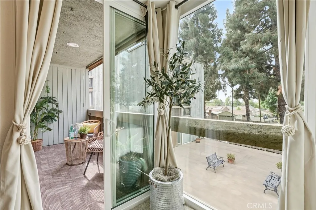 Come experience the charm and lifestyle of Whittier in this rare, turnkey single level end unit condo, situated on a historic tree lined street. Offering 1,364 sq. ft. this beautifully upgraded 3bed 2bath condo blends comfort, style, and convenience in one of Whittiers most sought after locations just minutes from Whittier College with easy access to the 605, 5, 10, & 60 freeways. Step inside to an open and inviting floor plan filled with natural light and thoughtfully curated upgrades throughout. The living and dining areas has laminate flooring, cozy fireplace, plantation shutters, new tinted dual-pane sliding doors. Freshly painted with all new dimmable LED Halo recessed lighting, new receptacles new light switches, custom light fixtures and new ceiling fans for a modern, polished feel. The updated kitchen has new granite countertops, abundant cabinetry, hardware, stainless steel appliances, Bosch dishwasher, LG electric range w/built-in air fryer, conventional oven, new garbage disposal, and LG stackable washer/dryer. The spacious primary suite has floor-to-ceiling tinted dual-pane windows, direct access to the balcony with new energy-efficient sliding door, dual closets, new carpet, recessed lighting & new ceiling fan. The primary bathroom has new plumbing, step-in shower, new tile floor & fixtures. Secondary bedrooms are generously sized with large new windows, recessed lighting, and ample closet space. The secondary full bathroom includes a tub, tile flooring, new light fixture and hardware. Additional improvements include, a new 18 SEER 3-ton heat pump HVAC system,