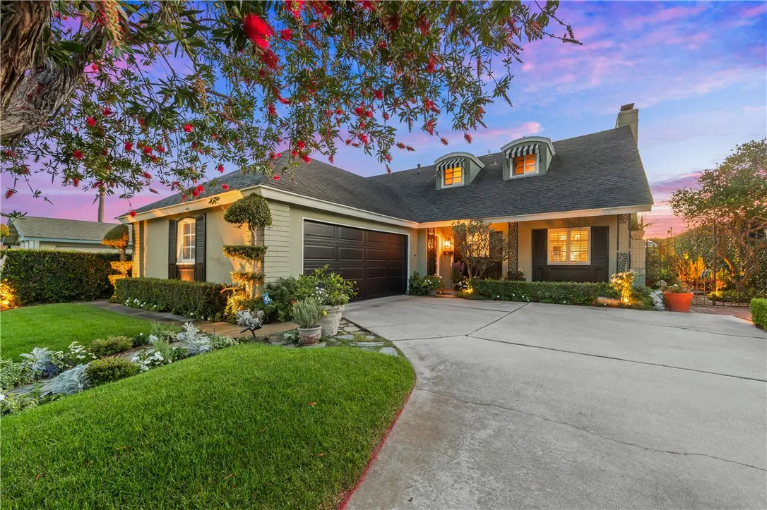 Tucked along a picturesque tree lined street in the heart of West Garden Grove, this exceptional Garden Park Plan 8, built by S&S Construction offers a rare opportunity to own one of the largest and most coveted floorplans in the neighborhood. Perfectly positioned directly across from Edgar Park, this 5 bedroom, 2 bathroom residence blends timeless character with elevated design, creating a true showpiece that checks all the boxes. Lovingly maintained by the original family since 1963, the home showcases craftsmanship rarely found today, including classic lathe and plaster construction. From the moment you step inside, Saltillo tile floors set a warm, inviting tone, flowing throughout the main living spaces and into the downstairs bedrooms. The reimagined guest bathroom is a designer moment, featuring a Kohler Village tub, white subway tile surround, Carrera marble vanity, and seagrass wall coverings. The interior has been elevated with smooth ceilings, recessed lighting, and crown molding, while dual-pane Simonton windows fill the home with natural light. At the heart of the home, the kitchen is both functional and refined, appointed with shaker cabinetry, pull-out shelving, spice racks, and stainless steel Jenn-Air appliances, including a 6-burner range. Designed with a curated aesthetic, this Acadian inspired residence features Ralph Lauren finishes, evoking the feeling of stepping into a Ballard Designs catalog. Upstairs, the primary suite is a true retreat, offering serene park views, a fireplace, and a walk-in closet. The spa-like bathroom is finished with Calcutta ma