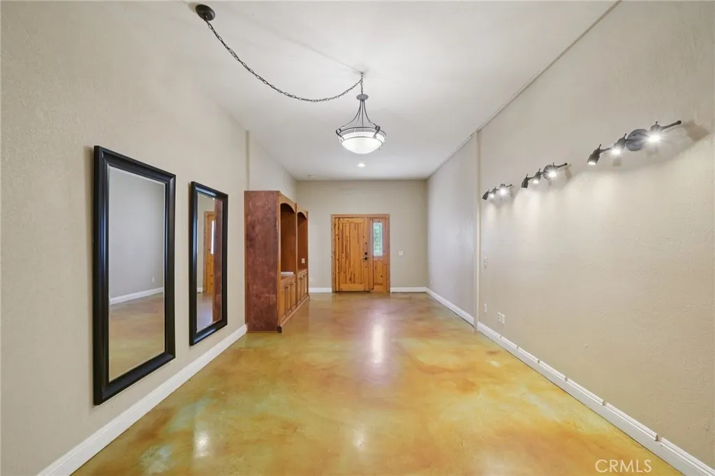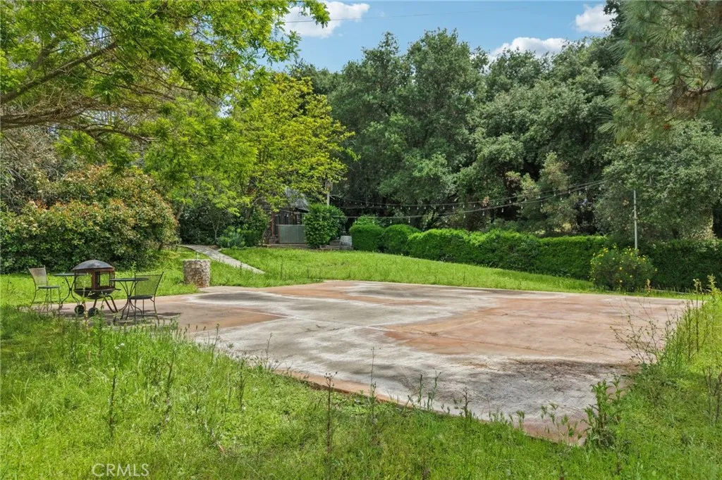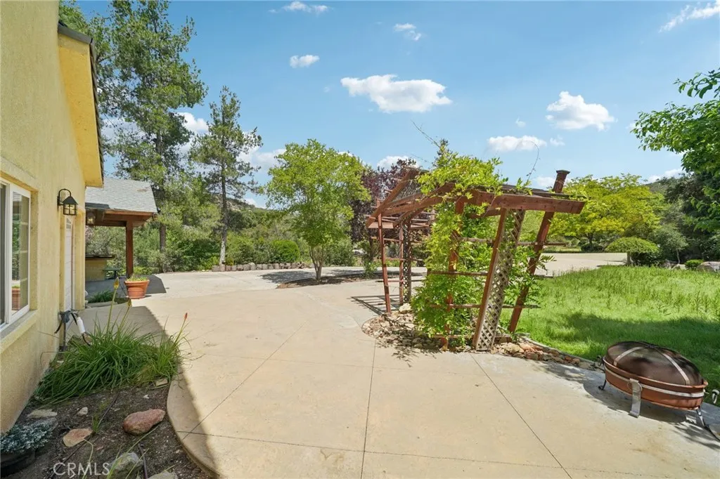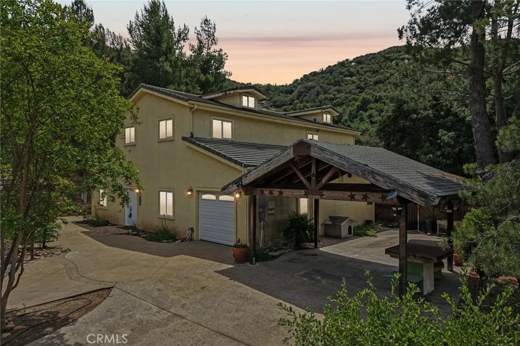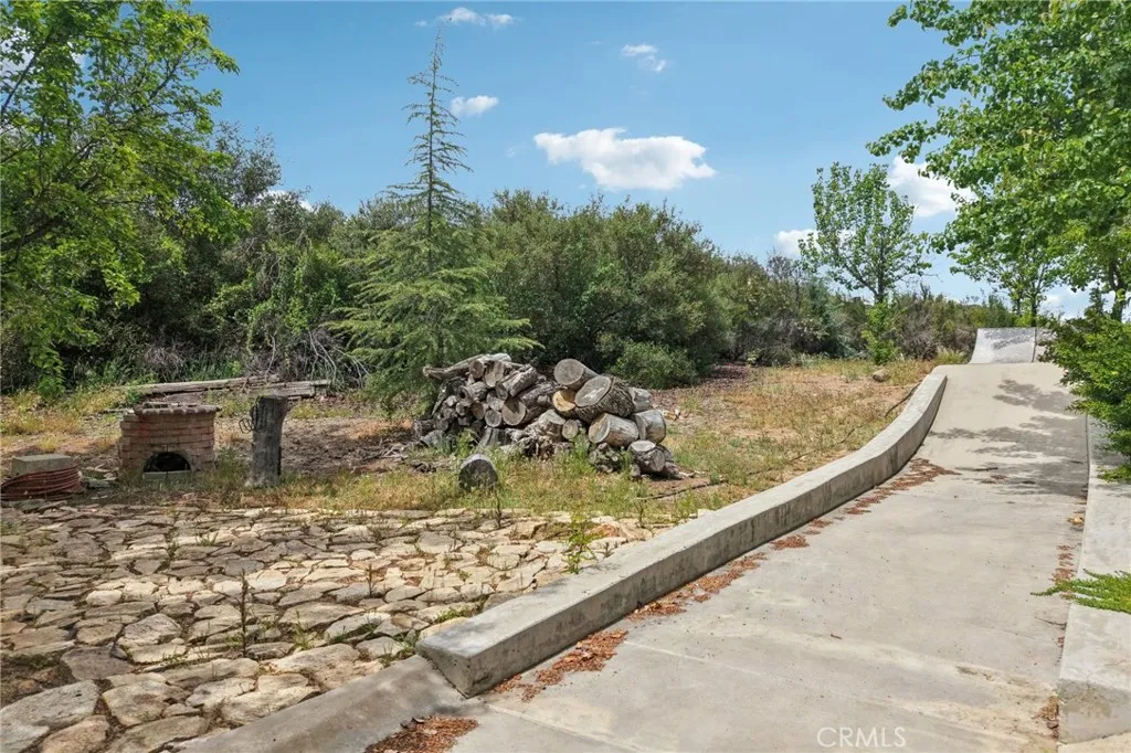 Seclusion and privacy is unavoidable when you turn into the driveway from Hacienda Dr as the paved road to the house is lined with countless trees and serenity. Absolutely one of a kind 4 bedroom, 2 bathroom, two story La Cresta home located in Murrieta with RV access and tandem garage. This 2256 sqft home has stained concrete, tile flooring and ceiling fans throughout the house with gorgeous views and endless options for entertainment sitting on nearly five acres.The entry opens into a long formal entry, and to the right you will find the first bedroom with a ceiling fan and a generous sized sliding door closet.The second bedroom is quite large and just at the end of the entry, with sliding closet doors and a ceiling fan as well. Plus, this room connects to the downstairs bathroom, which features a separate double sink with quartz countertops, an enclosed shower and tub combo, and a private door for the toilet. The entry also connects to a long and spacious workshop that can easily be converted into a fifth bedroom or office, or kept for storage, and a large garage that can fit up to 3 cars. The kitchen is located upstairs and features beautiful wood cabinets and granite countertops, with breakfast counter seating for five. The kitchen is highlighted by recessed lighting, with a stainless steel microwave, 4-burner stove, dishwasher, and double sink with great views. The kitchen opens to the family room that features a stunning brick wood-burning fireplace, recessed lighting, and a ceiling fan, perfect for a cozy evening. The primary bedroom is just next to the kitchen and