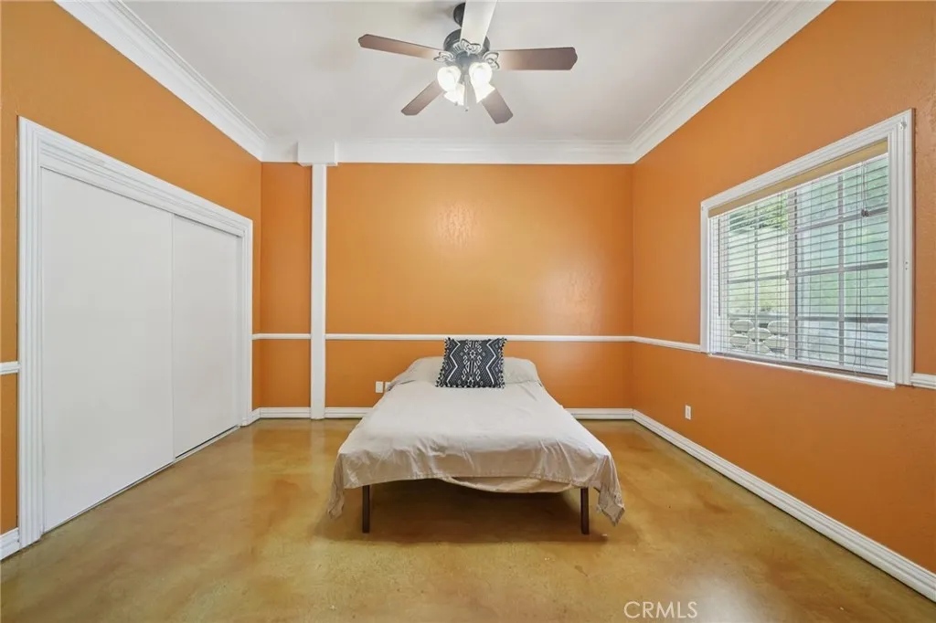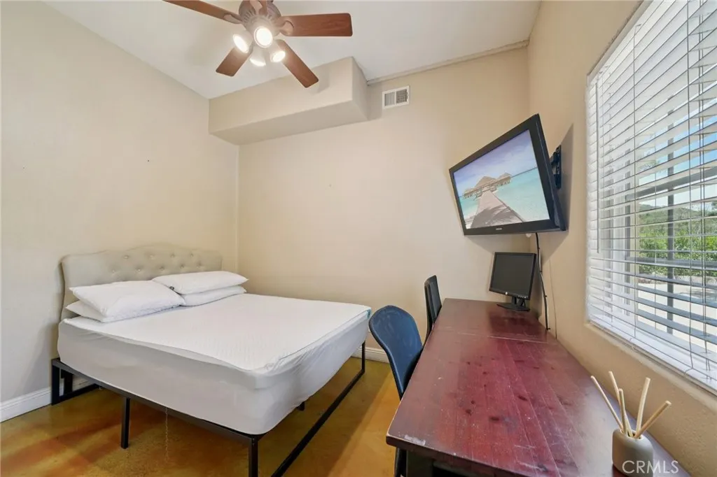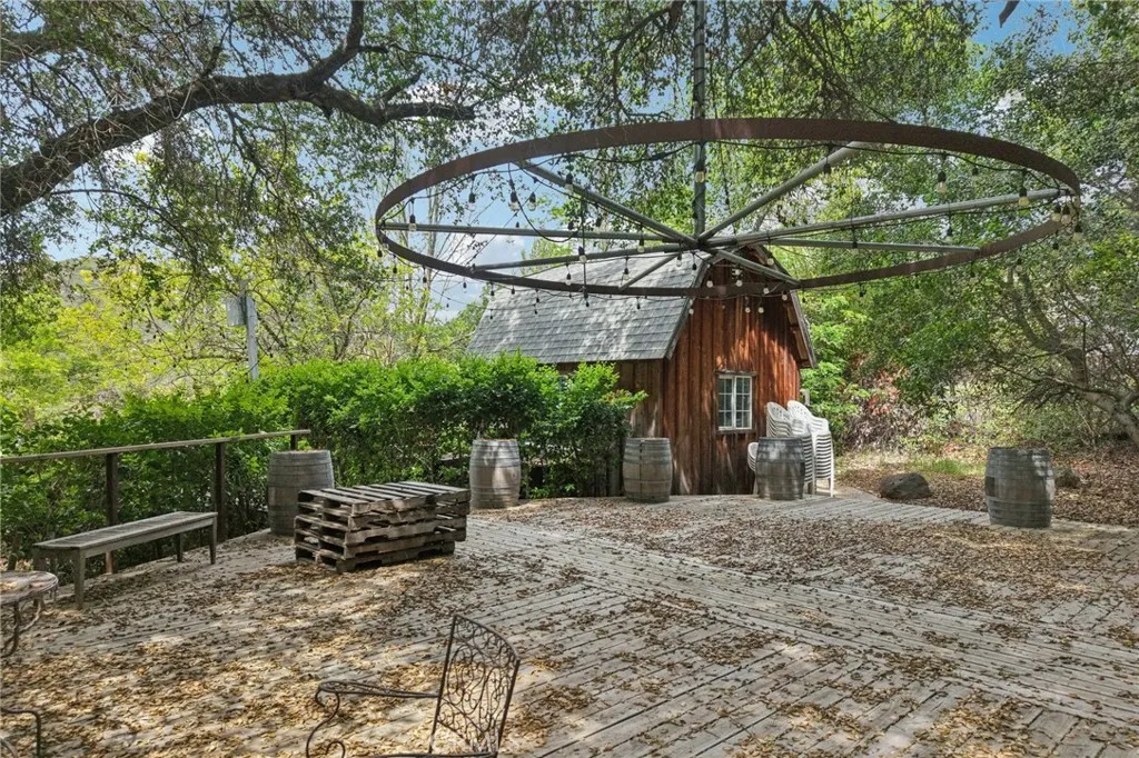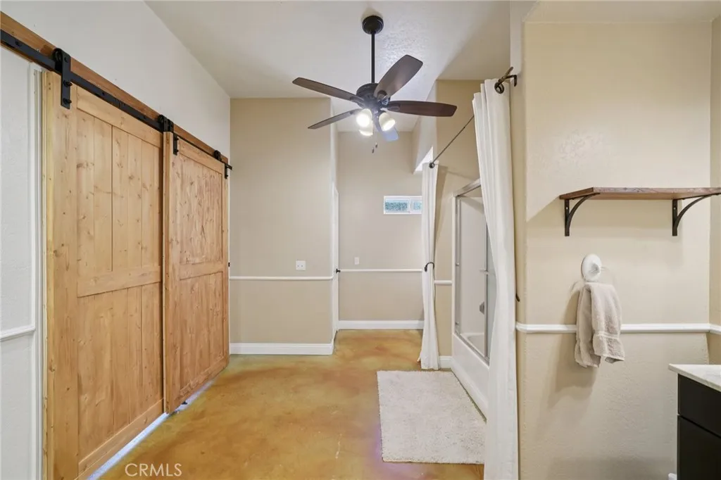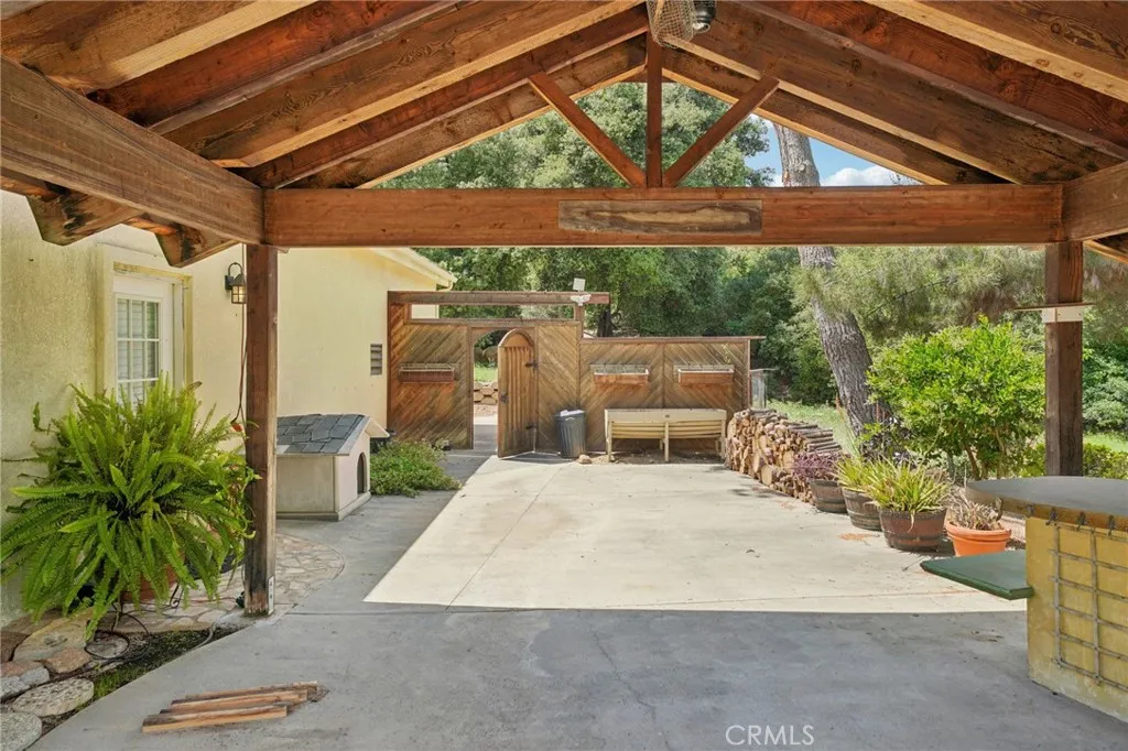 Seclusion and privacy is unavoidable when you turn into the driveway from Hacienda Dr as the paved road to the house is lined with countless trees and serenity. Absolutely one of a kind 4 bedroom, 2 bathroom, two story La Cresta home located in Murrieta with RV access and tandem garage. This 2256 sqft home has stained concrete, tile flooring and ceiling fans throughout the house with gorgeous views and endless options for entertainment sitting on nearly five acres.The entry opens into a long formal entry, and to the right you will find the first bedroom with a ceiling fan and a generous sized sliding door closet.The second bedroom is quite large and just at the end of the entry, with sliding closet doors and a ceiling fan as well. Plus, this room connects to the downstairs bathroom, which features a separate double sink with quartz countertops, an enclosed shower and tub combo, and a private door for the toilet. The entry also connects to a long and spacious workshop that can easily be converted into a fifth bedroom or office, or kept for storage, and a large garage that can fit up to 3 cars. The kitchen is located upstairs and features beautiful wood cabinets and granite countertops, with breakfast counter seating for five. The kitchen is highlighted by recessed lighting, with a stainless steel microwave, 4-burner stove, dishwasher, and double sink with great views. The kitchen opens to the family room that features a stunning brick wood-burning fireplace, recessed lighting, and a ceiling fan, perfect for a cozy evening. The primary bedroom is just next to the kitchen and