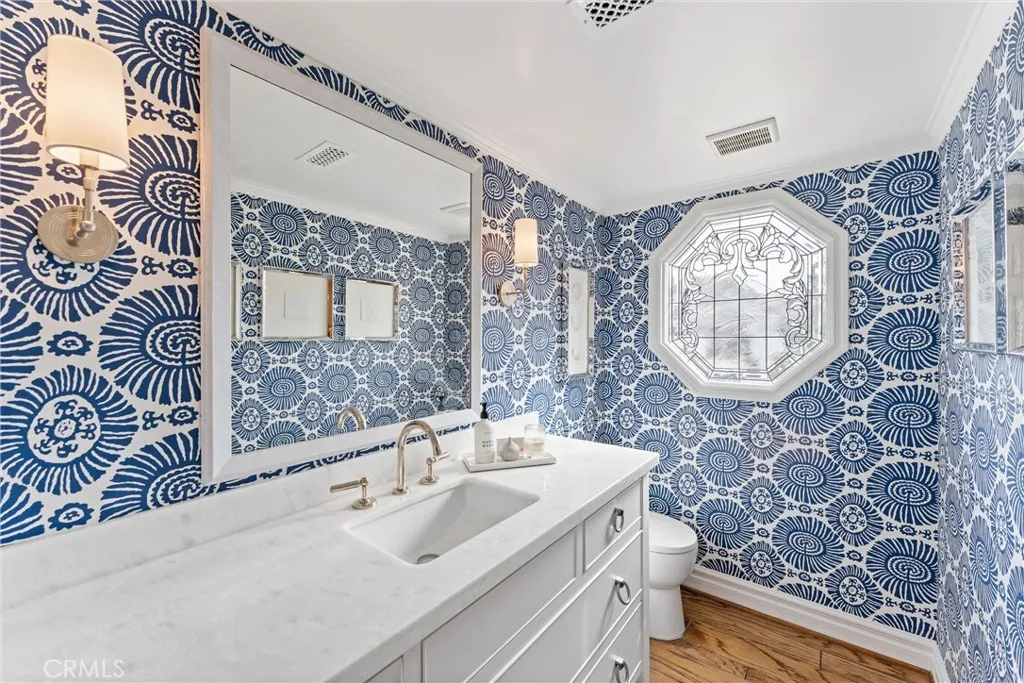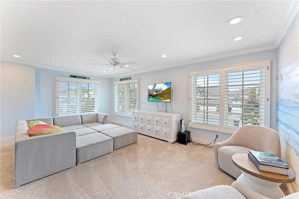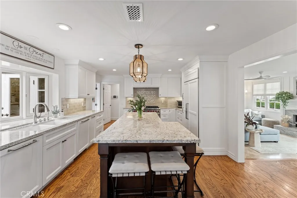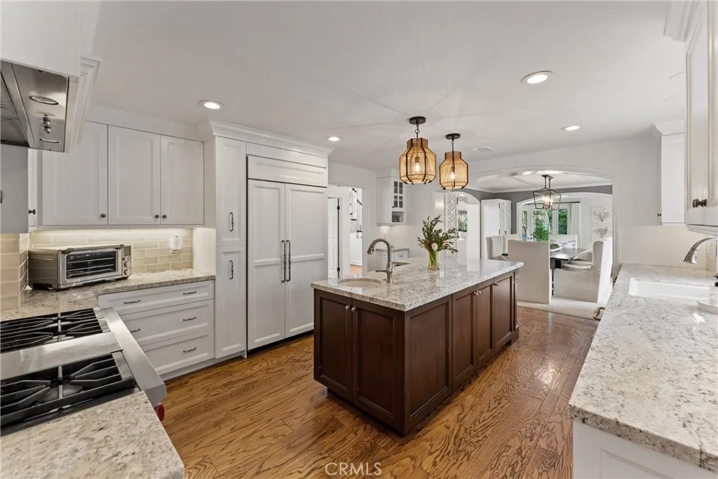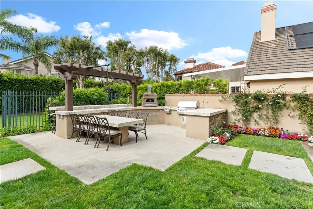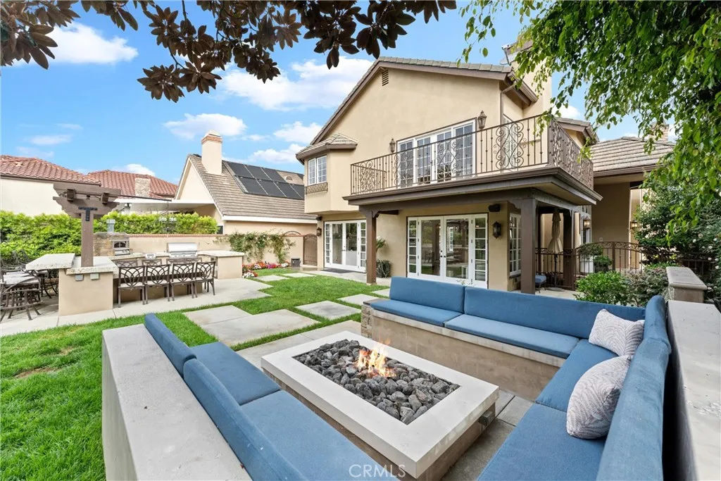 Located in the prestigious guard-gated community of Seacliff on the Greens in Huntington Beach, this exceptional residence with almost 4,000 sq ft offers the perfect blend of luxury, comfort, and coastal living. Situated on a desirable corner lot of over 7,000 sq ft, the home features 4 bedrooms, 3.5 bathrooms, a dedicated office, and a spacious 3-car garage. Designed for both everyday living and entertaining, the resort-style backyard opens to a lush greenbelt and is truly one-of-a-kindcomplete with a built-in BBQ, burner, outdoor pizza oven, refrigerator, bar with dining area, expansive fire pit with built-in coolers, and a tranquil water fountain. The chefs kitchen has been impeccably remodeled with granite countertops, a 48 Wolf range, built-in Sub-Zero refrigerator, dual dishwashers, and a charming bay window that fills the space with natural light. Throughout the home, youll find rich wood flooring, plantation shutters, custom drapery, designer pendant lighting and chandeliers, and a stunning double-door entry leading to a grand foyer with a statement staircase. Multiple fireplaces enhance the living room, family room, and primary suite, while French doors create seamless indoor-outdoor flow to the backyard and a serene central patio with a water feature. The sunken family room is an entertainers dream with surround sound and a built-in bar. Upstairs, a massive bonus room showcases a custom mural of the Huntington Beach Pier, offering the perfect space for recreation or relaxation. A rare opportunity to own a beautifully upgraded home in one of Huntington Beachs most
