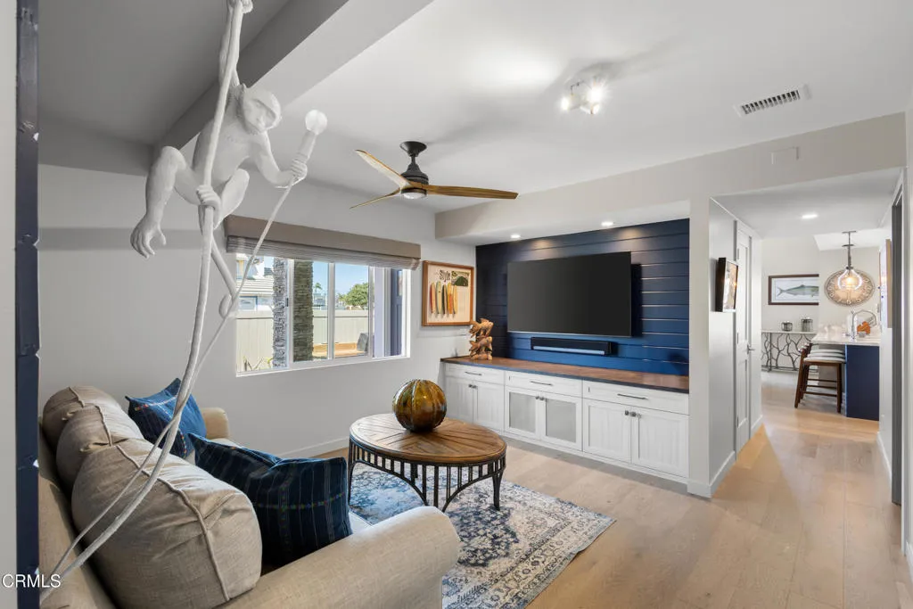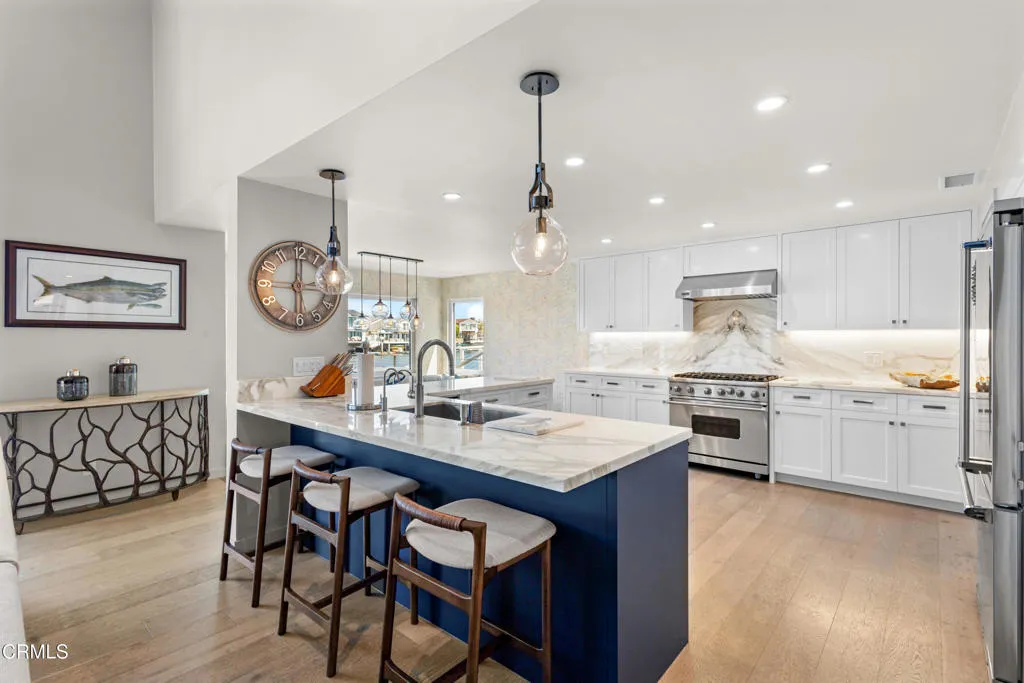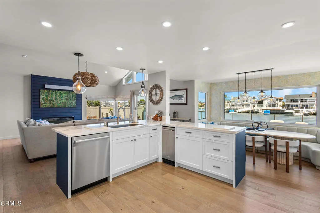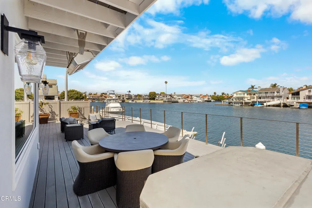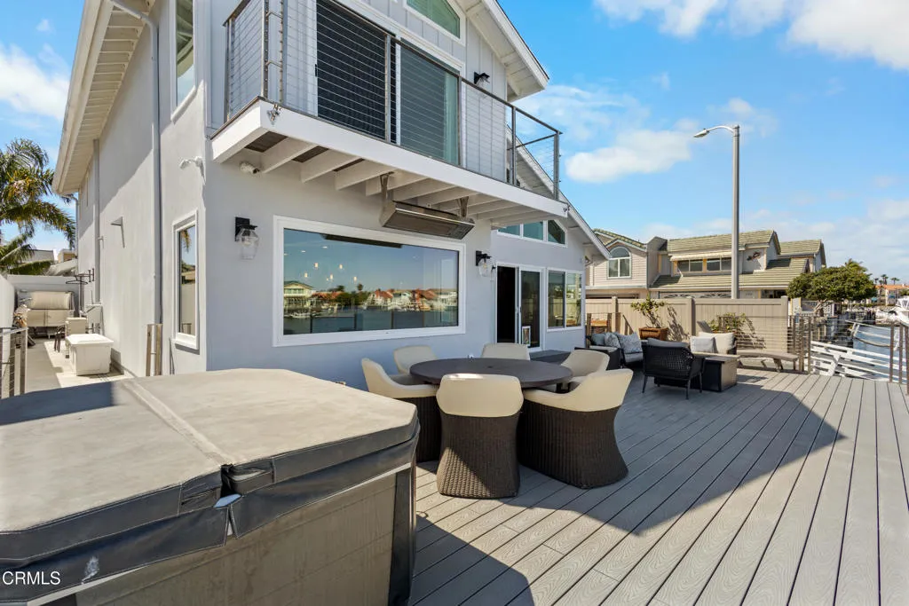 On the east-facing side of Mandalay Bay's main channel, there are exactly two detached corner homes. This is one of them. East-facing means unobstructed channel views, morning light, and natural protection from the northwest winds, a combination that makes outdoor living here exceptional year-round.Completely rebuilt in 2018: all new electrical, plumbing, gas lines, and drain lines. Dual-pane windows, Mitsubishi 3-zone heat pump, 7.81 kW solar system, and a Life Source whole-house water conditioner. Not a cosmetic refresh. A ground-up reinvestment in one of the most coveted lots on the harbor.Step off your 40-foot dock, backed by a 45-foot easement with 30-amp power and water, and you are 9 miles from the Channel Islands, one of the West Coast's most celebrated fishing grounds and a world-class whale watching destination. Yellowtail, tuna, blue whales, humpbacks. Most people charter a boat for a day. You will have it year-round.Inside, an open floor plan connects a chef's kitchen with walk-in pantry to a generous living space that opens to the channel-facing deck. The primary suite features two walk-in closets and a private balcony overlooking the water. Four bedrooms, three bathrooms, 2,311 square feet.Outside: built-in BBQ center with 36-inch grill, 36-inch smoker, ice machine, beverage cooler, food warmer, and sink. Freestanding spa, radiant patio heater, 170-bottle wine cooler, epoxy garage with custom cabinetry. Offered furnished. No Mello-Roos.