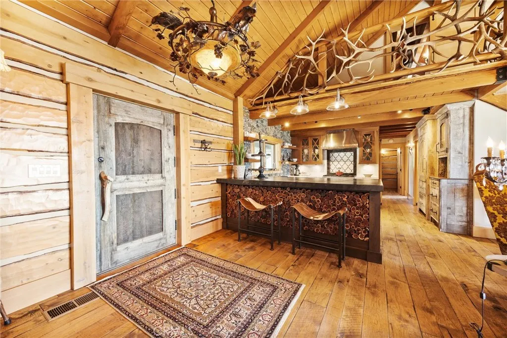 Tucked behind a gated entrance in the coveted community of Bear Valley Springs, this extraordinary mountain estate offers a rare blend of luxury, privacy, and lifestylespanning 14 acres across three separate parcels with two distinct residences. The main residence is a true architectural statement, wrapped in white cedar logs with matching white cedar plank interiors that create a warm yet elevated alpine aesthetic. Richard Marshall hickory flooring grounds the space with timeless elegance, while custom detailsincluding elk shed railings and curated designer fixturesbring a level of craftsmanship rarely found. At the heart of the home, the chefs kitchen is appointed with leathered quartzite countertops and a stunning French oven stove, seamlessly blending old-world charm with modern performance. Expansive windows frame sweeping mountain vistas, creating a seamless connection between indoor and outdoor living. Step outside to a Brazilian hardwood deck designed for both entertaining and quiet moments, complete with an outdoor fireplace that sets the tone for year-round enjoyment under the stars. The secondary residencea distinctive dome homehas been thoughtfully upgraded with new Milgard windows, a brand-new roof, and updated flooring, offering flexibility for guests, multigenerational living, or potential income. Beyond the gates, residents of Bear Valley Springs enjoy access to a full suite of amenities including golf, tennis, equestrian trails, restaurants, and community recreationall set against a breathtaking natural backdrop with roaming wildlife, including elk right ou