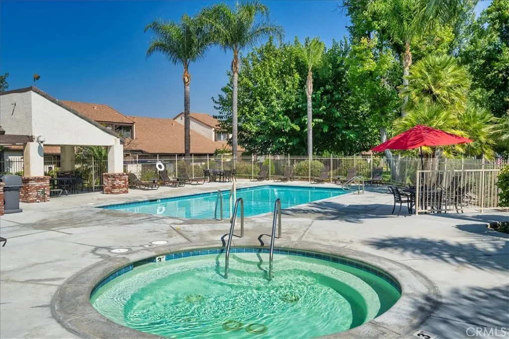 A 4 bedroom, 2 Bath Townhome within walking distance of a Golf Course. This stunning 4-bedroom, 2-bathroom townhome embodies the essence of resort-style living. As you enter, you're greeted by the airy expanse of the living room, boasting high ceilings that add a touch of grandeur to your everyday living space. The downstairs area features a spacious kitchen adorned with tile counters, offering ample room for culinary creations, and a generous dining area that's perfect for hosting gatherings. Sliding glass doors beckon you to the outside patio, an ideal spot for entertaining guests or unwinding with a refreshing morning coffee or a leisurely evening glass of wine. Venturing further downstairs, discover the primary bedroom, complete with an adjoining bath for added convenience, as well as another well-appointed secondary bedroom. Upstairs, two additional bedrooms await, along with a full bathroom. Valencia Fairways offers residents a plethora of amenities. Enjoy the nearby golf course, sparkling community pools, tennis court, and the lush parks throughout the neighborhood. Convenience is key with easy access to the freeway and close proximity to California Arts, College of the Canyons and Meadows Elementary. Don't miss your chance to experience the epitome of Southern California living at Valencia Fairways. Schedule your viewing today