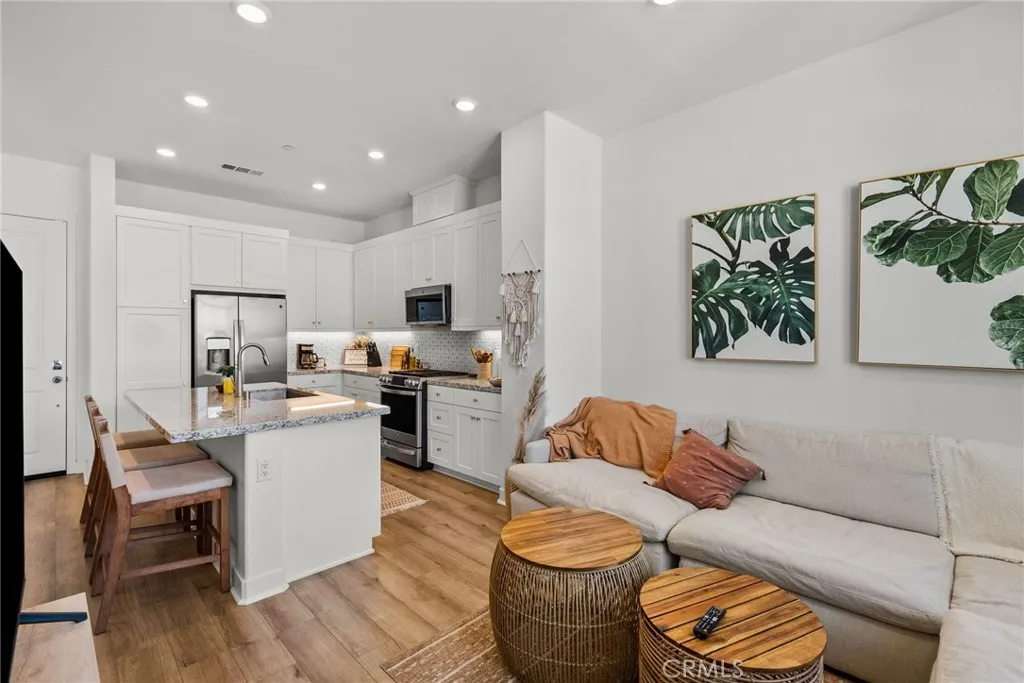 Welcome to modern living at 27466 Mercantile Ct, Unit 303, in the heart of Valencia! This 1-bedroom, 1-bathroom unit spans 720 sqft, providing a cozy yet spacious retreat. The home is both technologically advanced and also designed with an eye for detail and luxury. As you step inside, you'll notice the seamless integration of smart home features, including a Ring Doorbell that enhances your security. The convenience of technology continues with a Bluetooth-enabled stackable washer/dryer, microwave, and dishwasher, creating a connected and efficient living experience. The interior showcases upgraded flooring and a stylish backsplash, adding a touch of sophistication to the living spaces. Extra storage space is conveniently located just outside the unit's front door as well. Step outside, and you'll find a resort-style pool and spa that features cabanas. Additionally, the community offers a versatile events center for personal or business use, providing an extra layer of convenience and social opportunities. COMMUNITY IS WARRANTABLE AND FHA APPROVED(VERY RARE IN SCV).