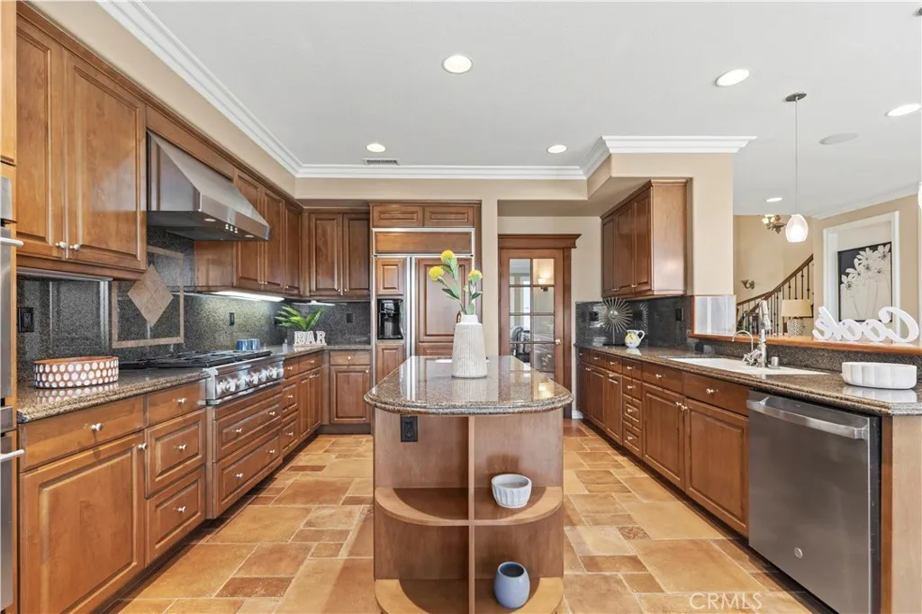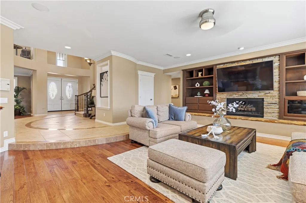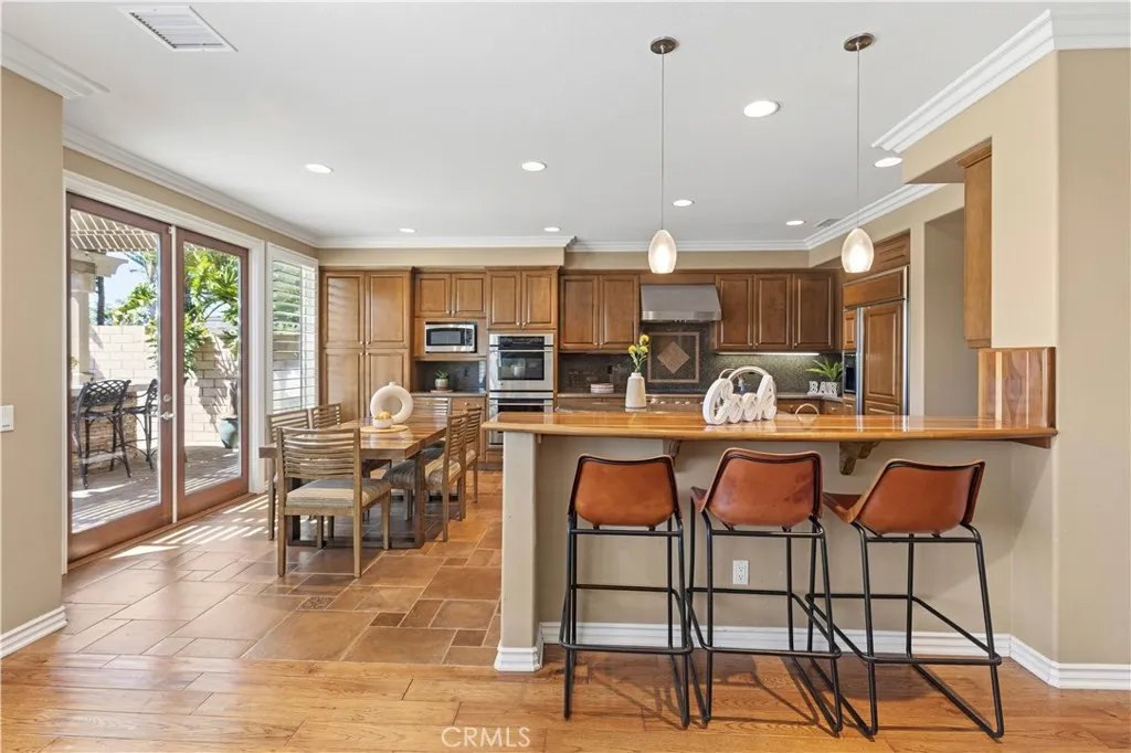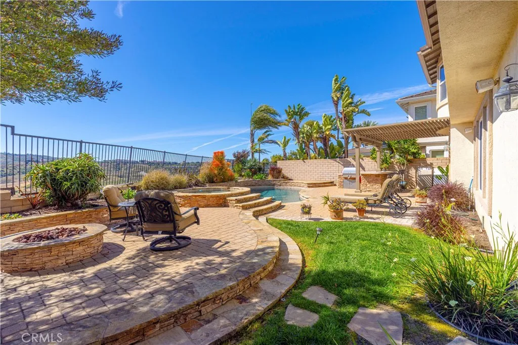 Tucked away in one of the most coveted locations within Hillcrest Estates, 28821 Drakes Bay offers a rare combination of privacy, luxury, and breathtaking natural beautybacking directly to Aliso Creek/Wood Canyon with no rear neighbors and unobstructed sit-down canyon views from both levels. This expansive residence showcases the largest floor plan in the community, enhanced with a builder-option 5th bedroom and a thoughtfully designed custom bonus roomideal for a home office, media space, gym or playroom. A grand foyer welcomes you with soaring ceilings and a striking circular staircase, setting the tone for the homes elegant interior. Thoughtful upgrades throughout include custom craftsman doors, crown molding, designer baseboards, central vacuum, and integrated sound wiring. The gourmet kitchen is designed for both everyday living and entertaining, featuring dual sinks, a center prep island, and a distinctive wood breakfast bar, all opening to a light-filled breakfast nook with French doors that frame the stunning canyon backdrop. The adjacent family room offers warmth and sophistication with a stone fireplace and custom built-ins. A highly desirable main-level en-suite bedroom provides flexibility for guests or multi-generational living. Upstairs, the expansive primary suite serves as a private retreat, complete with a dual-sided fireplace, sitting area, and sweeping canyon views. The spa-inspired primary bath includes dual vanities, a soaking tub, separate shower, and an oversized walk-in closet. Additional upstairs bedrooms include a versatile expanded bonus/playroom.