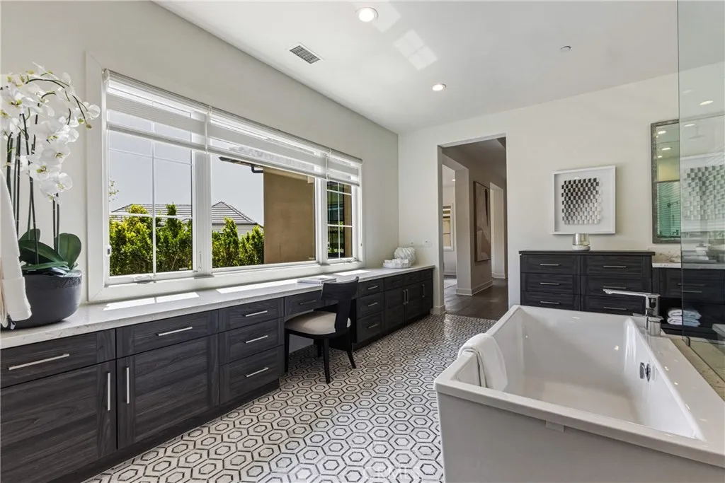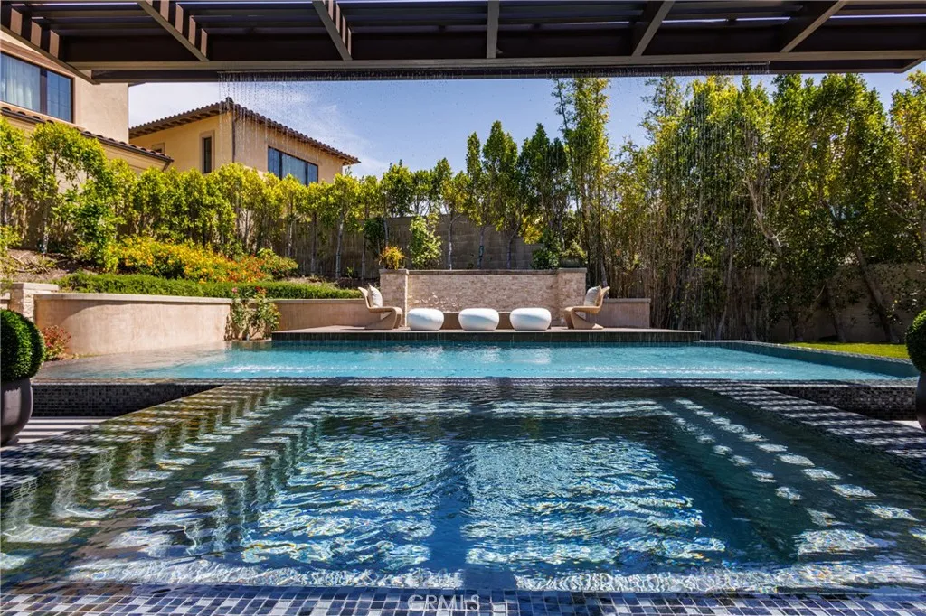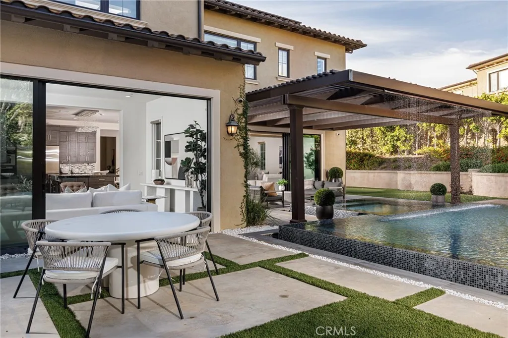 One of the crown jewels of Altair. 79 Eider Run combines exquisite interior upgrades with an oversized 10,000-square-foot lot that features one of the most impressive backyards you will find. Built in 2018 by Toll Brothers, the Callisto floor plan is one of the most desirable in the entire development. Enter through the front door and you are greeted by vaulted ceilings and a beautiful formal staircase. Downstairs you will find an oversized great room, formal dining room, a guest bedroom, office, and an enclosed California room that brings the total interior living space to 5,848 square feet. The chef's kitchen includes a gigantic island, Sub-Zero refrigerator, Wolf appliances, pot filler, real wood soft-close cabinetry, and a walk-in pantry. Oversized sliding glass doors create the ultimate indoor/outdoor living environment. The custom-built patio cover not only offers the perfect space for entertaining but also features a built-in waterfall that flows into the pool a showstopping feature that provides the most beautiful ambient sound. The backyard doesn't end there; the infinity-edge pool and spa are definitely the centerpiece, but shouldn't overshadow the built-in outdoor kitchen, fire pit, and putting green. The 9-inch wide hardwood flooring continues upstairs, where you will find an oversized loft, three additional bedrooms each with their own upgraded en suite bathrooms, and a separate laundry room. The real showstopper on the second floor, however, is the primary suite an expansive bedroom area, additional sitting retreat, a bathroom adorned in custom tilework, a w