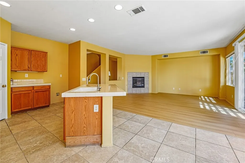 Situated in a highly convenient Eastvale neighborhood, this beautiful two-story home features a recently updated interior fresh paint and new flooring. The entrance opens to an inviting living room with vaulted ceilings and ample natural light, adjacent to a formal dining space. The open floor plan towards the back to unfold a spacious kitchen, features wood cabinetry, tile countertops, a pantry, and a center island, all in its original well-kept condition. Next to kitchen is a breakfast nook with a sliding glass door access to the backyard. It also connects to a family room anchored by a cozy fireplace. There is a master suite in main floor to accommodate overnight guests or multilgeneration lifestyle. Addition guest restroom is also aviable in main floor for convenience. Moving to upper level is fully carpeted with a spacious loft, along with three bedrooms, which includes a master suite and additional full bathrooms. There is also an extra space can be used as a play area or simply a meditation retreat. Additional property highlights including : an extra space / room at main floor can be used as home office or convert to a 5th bedroom, recessed lighting in kitchen, walk-in closet in upstairs master suite, laundry room upstairs for convenience, 3 car attached garage, low maintenance backyard with a built in BBQ grill set. No HOA. The property is located in the heart of Eastvale, providing immediate access to the 10, 15, 60, and 91 freeways. The location is near neighborhood parks, top-rated school. Agent please read private remarks.