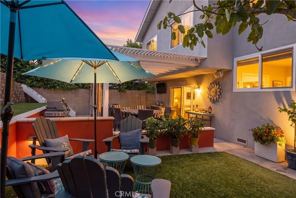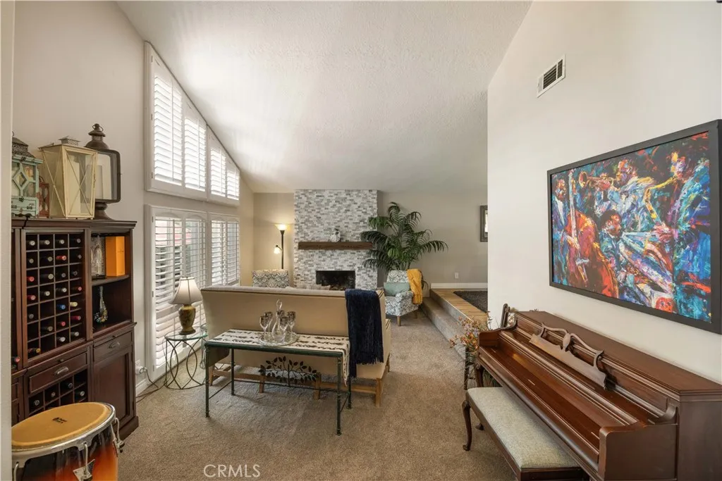 Rare opportunity! Only the 3rd home to come on the market in the past 4 years backing to Meadowlark Golf Course. This pristine, beautifully maintained home sits along the fairways just a short distance to the sand, offering the best of Huntington Beach living. Thoughtfully updated, this spacious 4-bedroom, 3-bath home features a versatile floor plan, quality upgrades, and seamless indoor-outdoor living. Enter into foyer with soaring vaulted ceilings and abundant natural light. The step-down living room features floor-to-ceiling windows and a striking fireplace resurfaced with floor-to-ceiling brick, creating a sophisticated focal point. The remodeled kitchen offers granite countertops, farmhouse sink, center island, flowing into the formal dining room, ideal for everyday living and entertaining. A few steps down, the family room includes a second fireplace, custom built-in entertainment center, and sliding glass door to a private patio and backyard, perfect for indoor-outdoor living. This level also features a main-floor bedroom, full bath, and indoor laundry with direct garage access. Upstairs, the spacious primary suite includes a large dressing area, generous closets, and dual vanity. The garage rooftop offers potential for a private deck. Two additional bedrooms, a full hall bath, and abundant storage complete the upper level. The backyard backs to Meadowlark Golf Course, elevated beyond a terraced landscape for added privacy from golfers. A private gate provides direct access, perfect for a stroll or mid-round stop at home. Landscaping is low maintenance with artificia