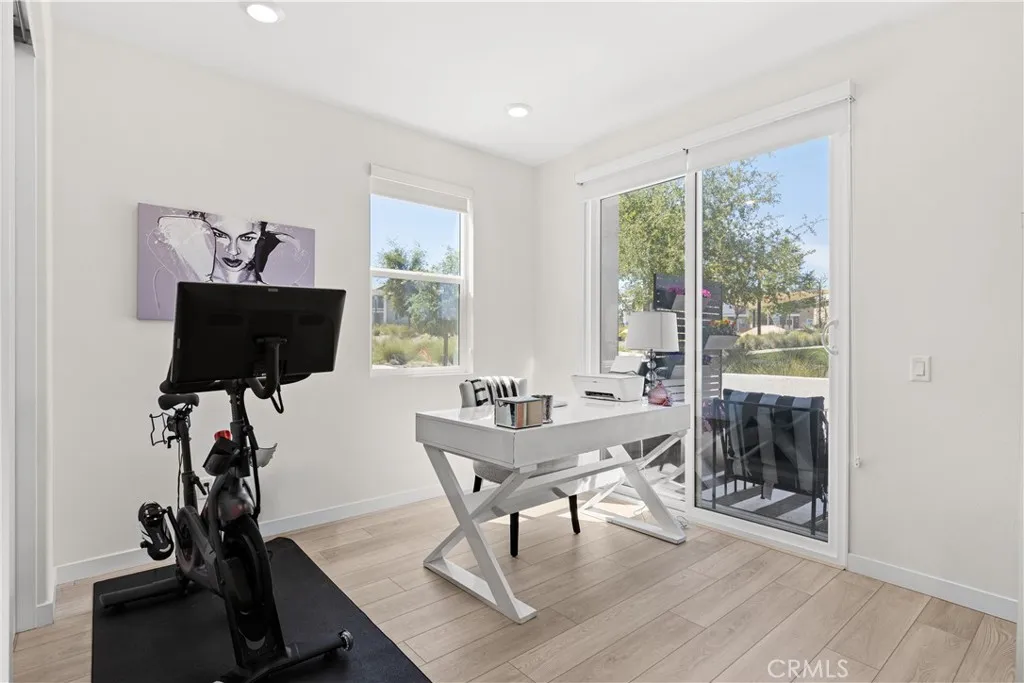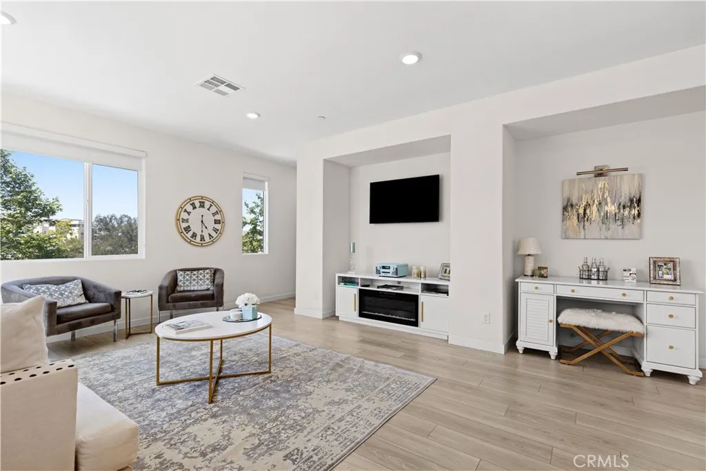 Experience elevated living with serene park VIEWS in this newer end unit townhome, ideally located in the highly sought after FivePoint community. The open concept layout features spacious living and dining areas that flow seamlessly into a chefs kitchen with premium appliances, modern finishes, and a large walk in pantry. Luxury vinyl plank flooring throughout the home. Upstairs offers three generously sized bedrooms, including a luxurious primary suite with a walk in closet and spa inspired bath featuring a soaking tub, glass enclosed shower, and dual vanities. A first floor bedroom and full bath provide ideal flexibility for guests, a home office, or multigenerational living. Additional highlights include a private gated courtyard, two car garage, fully owned solar, and an electric vehicle charging station. The home also benefits from among the lowest HOA dues in the community, including exterior homeowners insurance. Enjoy resort style amenities including pools, spa, clubhouse, parks, scenic trails, and a weekly farmers market, all within a top rated school district.