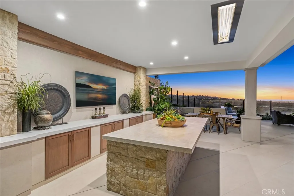 Located in the prestigious gated enclave of Arborel in Turtle Ridge, this exceptional residence offers one of the largest yards in the community, showcasing sweeping views of the ocean, city lights, and Palos Verdes. This elegant home feeds into the preferred Vista Verde Elementary School in the highly regarded Irvine Unified School District. Extensively upgraded within the past year with approximately $750,000 in enhancements, every detail of this home reflects quality and thoughtful design. The chefs kitchen is appointed with premium Sub-Zero refrigeration, a Thermador dishwasher, self-closing custom cabinetry, a spacious walk-in pantry, and a dedicated Kangen water filtration faucet. The home also features whole-house filtered water, a tankless water heater, and has been fully re-piped for added efficiency and peace of mind. An additional 249 square feet has been seamlessly incorporated to create an expansive great room on the main level, along with a private sitting area off the primary suiteboth designed to capture the homes stunning, unobstructed views. Beautifully remodeled bathrooms and a custom-designed walk-in closet further elevate the homes appeal. The outdoor living space is an entertainers dream, featuring exquisite stonework, an oversized BBQ, a bar with a dramatic waterfall feature, and a generous patio ideal for hosting while enjoying the spectacular surroundings. Additional highlights include an epoxied garage floor with custom built-in cabinetry. Residents enjoy access to resort-style amenities, including an elegant clubhouse, pool, spa, and private caban