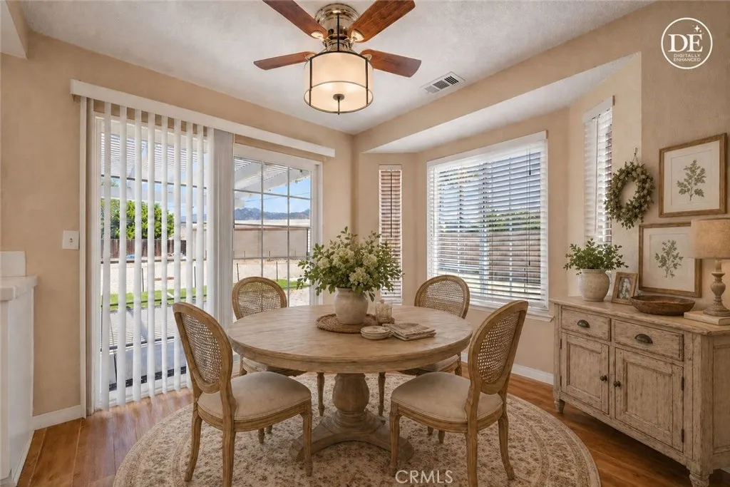 This well-maintained home offers 1,061 sq. ft. of comfortable living space, situated on a generous 11,761 sq. ft. lotproviding endless possibilities for expansion, recreation, or additional use. This property has Low Taxes and No HOA's. Inside, the living room, dining area, and kitchen feature stylish wood-look tile flooring, creating a cohesive and modern feel throughout the main living areas. The inviting living room includes a cozy gas fireplace and flows seamlessly into the dining area which is complete with a ceiling fan and sliding glass door leading to a Aluma wood covered patioperfect for indoor-outdoor living. The bright kitchen opens to the dining space and is equipped with a stove, microwave, dishwasher, and tile countertops, offering both functionality and charm. The spacious primary suite features carpet flooring, a ceiling fan, a walk-in closet, and a sliding glass door with direct access to the Aluma wood covered patio. The en-suite bathroom includes dual sinks, a walk-in shower, ceramic tile flooring, and a convenient linen closet. The second bedroom offers carpet, a ceiling fan, and two closets for ample storage. The secondary bathroom includes tile flooring, a single vanity, and a shower-over-tub combination. Step outside to a truly standout featurethe expansive backyard includes a very large workshop with rear access, offering excellent potential for RV parking, additional vehicles, or future customization. With the size and layout of the lot, there may also be opportunities for an ADU (buyer to verify), making this property ideal for those seeking flexib