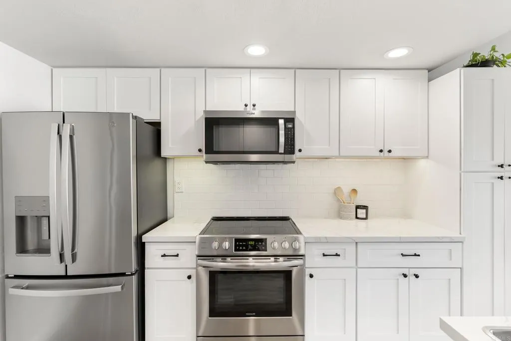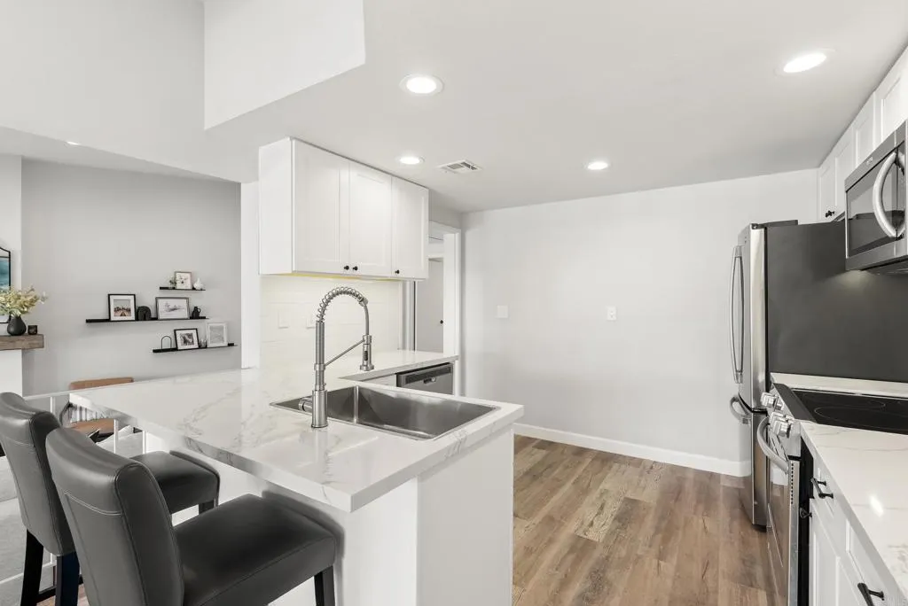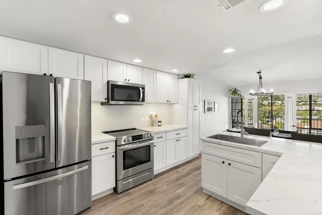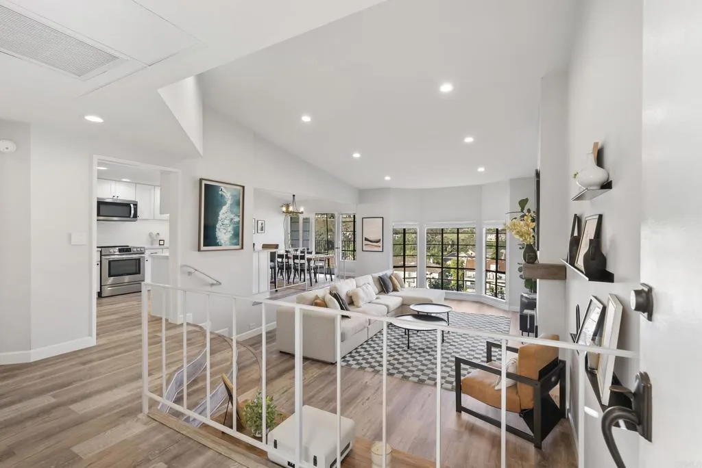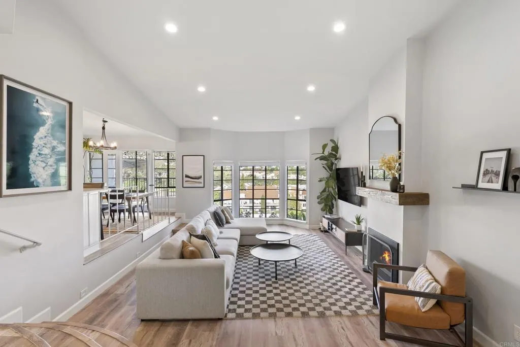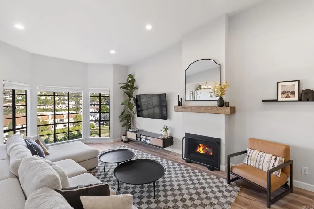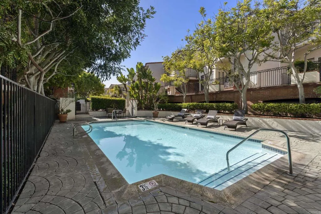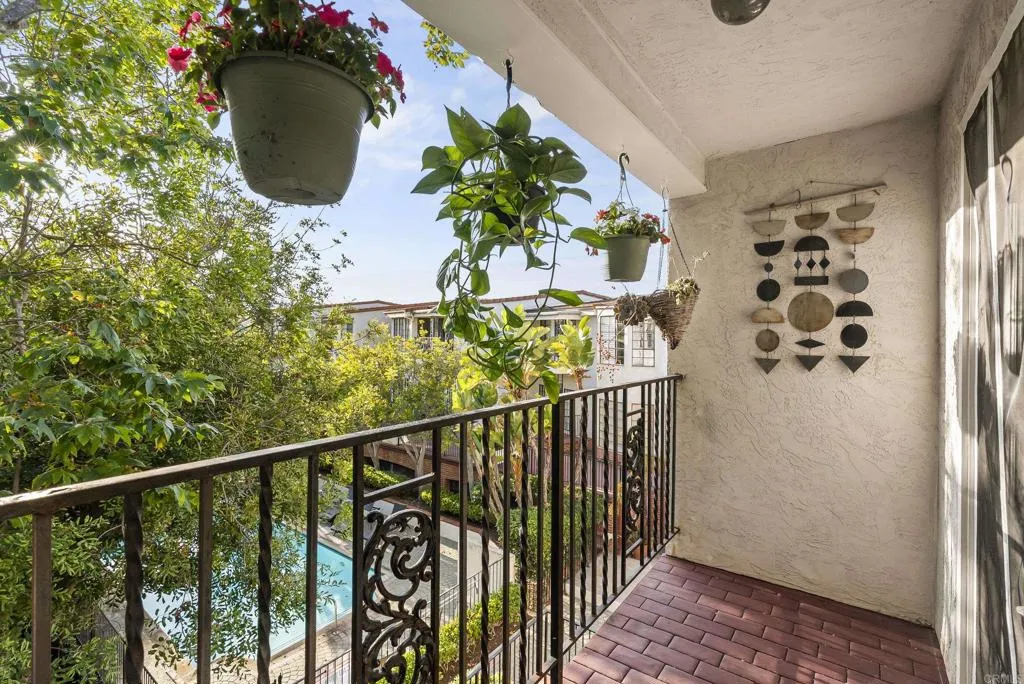 Welcome to Orleans East, one of La Costas rarely available gated communities in Carlsbad. This well-appointed top-floor end unit 2-bedroom, 2-bath residence offers approximately 1,285 square feet of thoughtfully designed living space, ideally positioned with tranquil fairway views of Hole #5 at the Omni La Costa Golf Course. The interior features a light-filled, open-concept floor plan enhanced by luxury vinyl plank flooring, recessed lighting, and refined custom finishes throughout. The living area is anchored by a tastefully designed fireplace with a custom mantel, creating a sophisticated yet inviting focal point. A private balcony just off the kitchen provides a seamless extension of the living space, while both bedrooms offer direct access to a second shared balcony overlooking the stunning community pool and spa, promoting a balanced indoor-outdoor lifestyle. Designed with both functionality and comfort in mind, the home offers a cohesive flow ideal for everyday living and entertaining, complete with the convenience of in-unit laundry. The bathrooms have been stylishly refreshed with new fixtures, and the bedrooms are complemented by custom closet doors, contributing to a clean and elevated aesthetic. The property presents a true turnkey opportunity. Additional highlights include access to a underground parking structure with two assigned parking spaces and two private storage sheds. Conveniently located near premier shopping, dining, and top-rated schools, and approximately eight minutes from the coast, this residence embodies the essence of Southern California livin