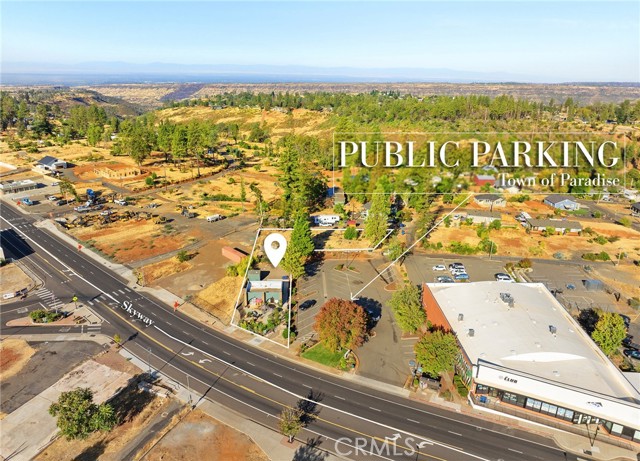 Nestled in the heart of Paradise, one of California’s fastest-growing and most resilient communities, this high-visibility commercial property offers an exceptional investment opportunity. The parcel spans an expansive 25,265 sqft with CB zoning, providing endless possibilities for future development. Positioned in the vibrant downtown district, this unique property wraps around a public parking lot owned by the Town of Paradise, ensuring ample parking and foot traffic. Currently home to Green Paradise Deli Café, a well-known farm-to-table, organic take-out restaurant, the property features a certified kitchen commissary perfect for food trucks or local food preparers needing licensed space. The deli offers a charming and community-focused appeal with its organic garden, operating under a "non-profit" status. Recent upgrades include updated electrical and plumbing, along with beautifully landscaped front and rear areas, including a pave stone patio perfect for outdoor seating or events. A storage shed adds practical functionality to the space. The true gem of this property lies in the size and future potential of the land. With ample space for expansion or new ventures, and the possibility of future sewer connections, the opportunities are endless. As Mark Twain wisely said, 'Buy land, they’re not making it anymore.' Land like this, in a thriving and growing community, is a rare and valuable find. Jump on this opportunity to be a part of Paradise's continued growth and resilience.