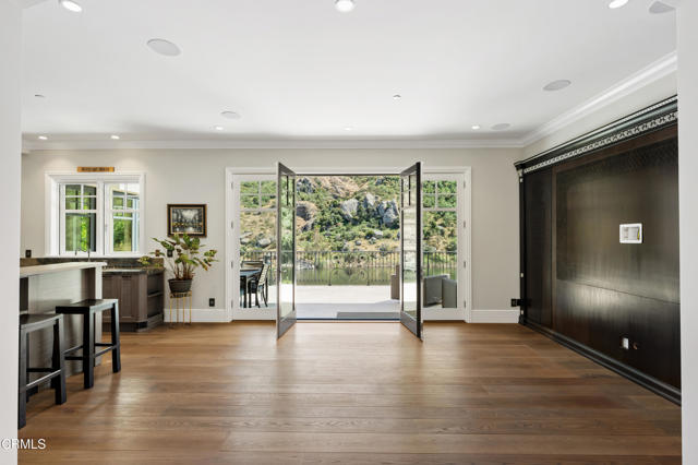 Welcome to Chateau Sherwood, a striking waterfront estate in Westlake's sought-after Lake Sherwood community. Spanning 7,782 square feet, this 5-bedroom, 4.5-bath home blends modern luxury with curated European design, creating a space that feels both elevated and effortlessly livable.Designed with lifestyle in mind, the home offers seamless indoor-outdoor living and standout amenities: a private boat dock for convenient lake access, a 500-bottle climate-controlled wine cellar, and a rare 3-story in-home elevator. The chef's kitchen is anchored by a handcrafted La Cornue range, while expansive living spaces make entertaining feel natural - whether it's a relaxed evening with friends or a larger gathering.Clean lines and contemporary flow meet artisan detail throughout - from custom chandeliers and sconces handcrafted in Venice using Murano glass and Swarovski crystals, to bespoke Italian furniture designed specifically for the home. Subtle French influences add character, including reclaimed limestone from the Paris Opera Bastille and a 17th-century marble fireplace mantel.Set among some of Southern California's most impressive estates, this home delivers a modern lakefront lifestyle with privacy, style, and convenience. Welcome to 2112 Trentham Road - where contemporary living meets the calm of the Lake Sherwood waterfront lifestyle.