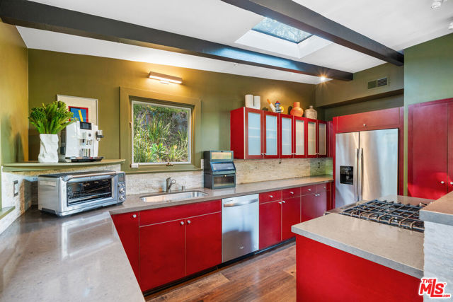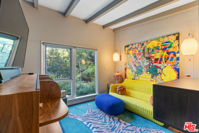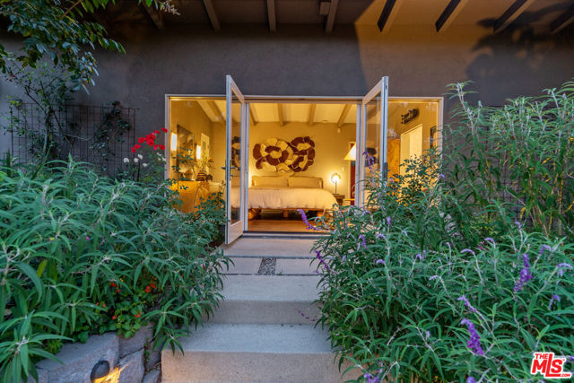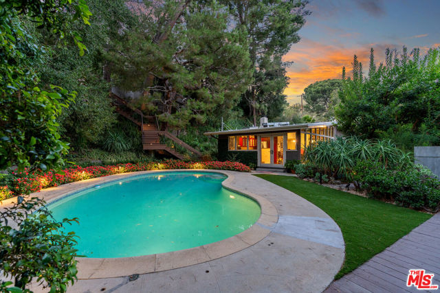 The Rodenberg Residence | c.1954 Mid-Century Modern Masterpiece | Secluded within the storied hills of Laurel Canyon, the Rodenberg Residence is a true Mid-Century Modern retreat designed in 1954 and privately tucked behind gates on an expansive double lot. A rare find, this Palm Springs inspired Post & Beam offers the kind of privacy and architectural pedigree that defines the Hollywood Hills celebrity lifestyle. Walls of glass invite the outside in while preserving a serene sense of seclusion, flooding the interiors with natural light and framing canyon and garden views. The open living space anchored by a sculptural fireplace and custom built-ins feels both expansive and intimate, ideal for quiet evenings or chic entertaining. The skylit chef's kitchen, outfitted with stainless appliances, is designed for gatherings that flow seamlessly out to the pool and deck. Here, the classic kidney-shaped pool and generous terraces create a private oasis for sun-drenched afternoons or starlit nights. The primary suite is a sanctuary within a sanctuary complete with a spa-like bath and doors that open directly to a discreet outdoor hot tub, perfectly hidden for private moments of relaxation and escape. With rear access to a private two-car garage from a concealed shared drive, this residence offers both convenience and discretion. The Rodenberg Residence is more than a home it is an architectural hideaway, where Mid-Century glamour meets ultimate privacy in the Hollywood Hills.