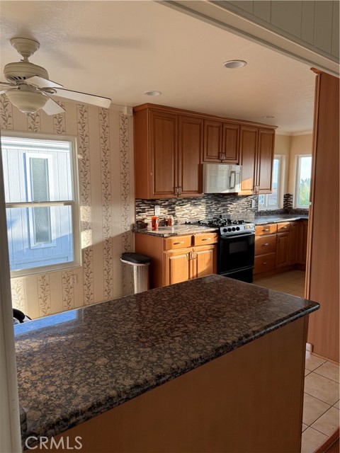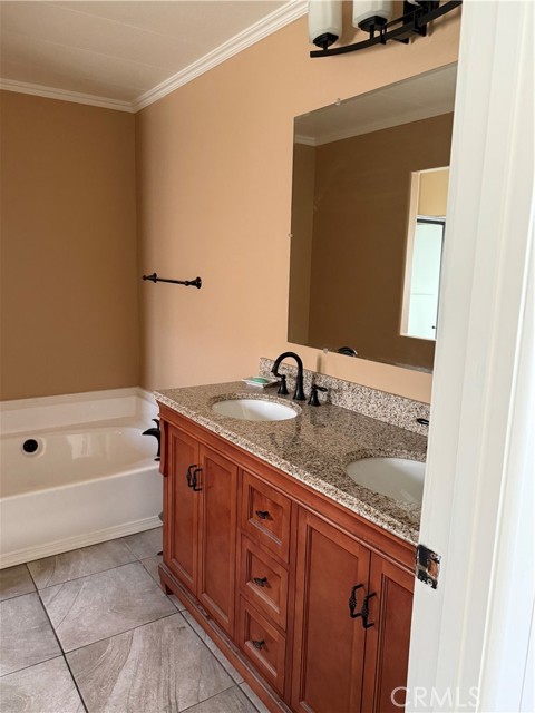 Lowed Price way below market value. GORGEOUS 3 bedroom, 2 bathroom 1760 square foot home with AMAZING floorplan, GREAT CURB APPEAL, beautiful mountain views, located at highly desirable Oakridge gated Mobile Home Park. Property has BRAND NEW ROOF in 2024 that cost over $28,000, very nice BRAND NEW CARPET in 2 of 3 bedrooms, Wood Floors, PAINTED bedrooms, bathrooms and kitchen ceiling, Kitchen is upgraded with GRANITE COUNTERS, TONS of CABINET SPACE, LAZY SUSANS, tile backsplash, New Garbage Disposal, Large Dining Area, Huge Living Room has high vaulted ceilings, 3rd bedroom has Walk In Closet and can be used as an Office or Bedroom, Newer Double Pane Windows throughout, Huge Master Bedroom with high vaulted ceilings has private bathroom with Granite Counters, large tub to relax in, separate shower, Large Sliding Mirrored Closet Doors and very nice NEWER, excellent quality sliding glass doors lead to covered patio with incredible mountain views. Side yard is good size, 2nd bathroom also has granite counters. Central A/C, brand new Water Heater, Laundry Room with a LOT of Cabinet Space, BRAND NEW 2 CAR ATTACHED GARAGE Door and new Mechanism, front yard has beautiful Roses and automatic sprinklers. Resort Style Amenities include Pool, 2 spas, Clubhouse, Library, Billiards, Gym, Putting Green, Pickleball, picnic areas with large beautiful greenbelts, tennis, basketball, parties and events at Clubhouse, Yoga Classes, Pool Exercise Group and more, 24 hr. Security Guard, RV Storage for boats and RV, guest parking and more. Space Rent lower than most Homes and Rent Control is HUGE PLUS.