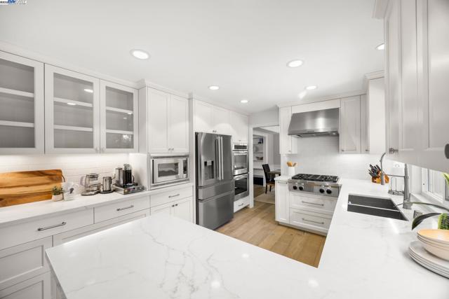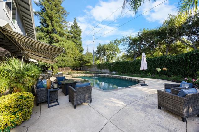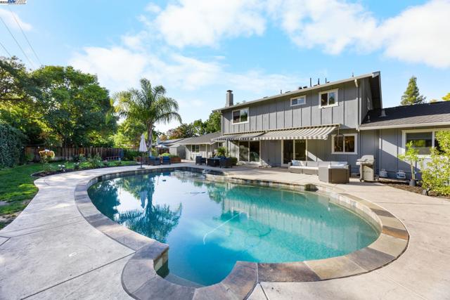 Gorgeous updated 4-bedroom, 3-bath home on a quiet cul-de-sac in the sought-after Brookside neighborhood. With 2,509 sq. ft. of living space on a generous 14,950 sq. ft. lot, this home offers the perfect blend of comfort and convenience. The bright floor plan, featuring hardwood floors throughout the downstairs area, includes a spacious living room and a family room, both with raised gas fireplaces, as well as a formal dining area. The gourmet kitchen features ample counter and storage space, stainless steel appliances, a sitting area, and views of the backyard. A bedroom and full bathroom downstairs make it ideal for entertaining guests or a home office. The laundry room, featuring a sink and cabinet space, leads into the large 3-car garage, which completes the main level. Upstairs, the primary suite boasts a spacious layout, a spa-like bath with dual sinks, a large shower stall, and a separate vanity area. Two additional bedrooms share a full bath. The expansive backyard is a true retreat, featuring a sparkling blue pool, raised garden beds, and plenty of open space. Just minutes to downtown, top-rated schools, and the Iron Horse Trail, this place has it all. Welcome to your new home!