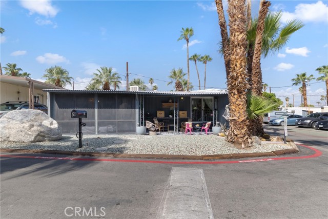 This completely remodeled shabby chic mobile home is located on a prime corner lot in an all-ages Palm Springs community. With plenty of natural light streaming through large windows, the home offers an open-concept layout that combines vintage charm with modern updates. The tasteful, shabby chic furniture throughout the home is included, making it move-in ready. Enjoy the screened-in patio, perfect for relaxing or entertaining, and take full advantage of the community amenities, including a sparkling pool, rejuvenating spa, and a clubhouse. Whether for seasonal living or year-round comfort, this home provides a perfect desert retreat!