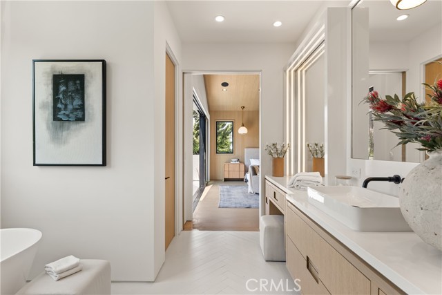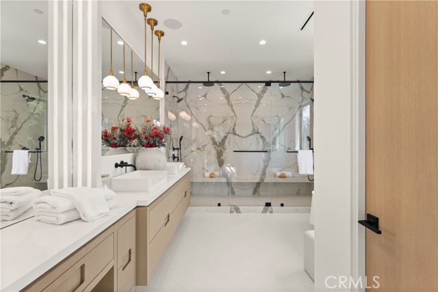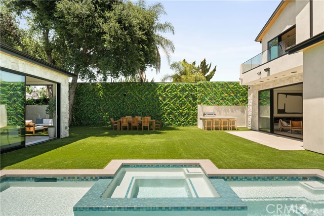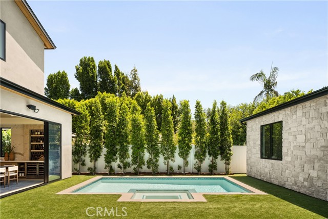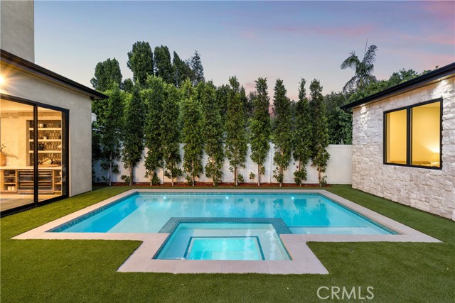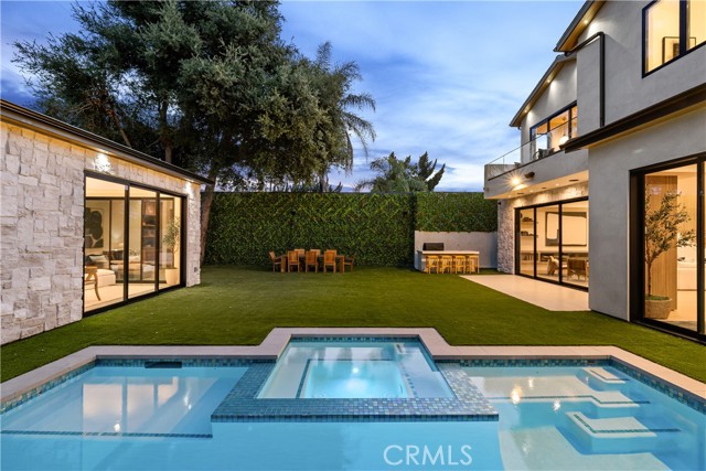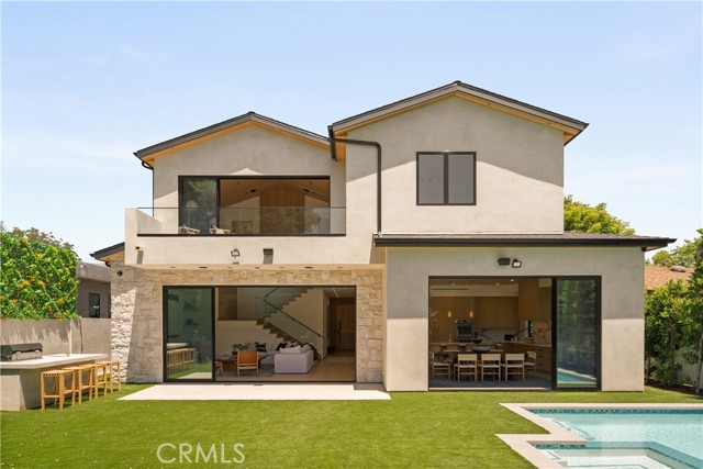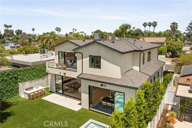 Newly constructed residence defines elevated contemporary living, offering 5 beds and 5 full baths in the main house, along with a detached 1 bed and 1 bath ADU, ideal for guests, extended family, or flexible use. Walls of glass and an open-concept layout fill the home with natural light, creating a warm and inviting atmosphere. At the heart of the home, the designer chef’s kitchen is a true showpiece, featuring top-of-the-line Thermador appliances, a dramatic waterfall island and dual wine refrigerators for effortless entertaining. The kitchen flows into the expansive living room, which opens to the backyard and central courtyard through two oversized sliding glass doors- seamlessly connecting indoor and outdoor living spaces. The main level also includes a formal dining room, a state-of-the-art home theater, an ensuite bedroom, mudroom and a stylish powder room. Upstairs, four spacious bedrooms include a luxurious primary suite with a private balcony, custom walk-in closet and spa-style bath complete with soaking tub, rainfall shower and double vanity. A convenient laundry room and two additional full bathrooms complete the second level. The fully detached ADU offers a private entrance and includes a spacious living room with kitchenette, full bathroom and one bedroom—perfect as a guest house, office, gym, or income-producing unit. The backyard is your personal retreat, complete with a sparkling pool and spa, outdoor kitchen, low-maintenance turf and ample patio space for dining and lounging. Additional highlights include soaring ceilings, a whole-home smart system with integrated speakers, a robust security system, sleek two-car garage with EV charging capabilities. Ideally located near Westfield Fashion Square, Ventura Boulevard’s premier shopping and dining, and top private schools including Notre Dame, Harvard-Westlake and Campbell Hall.