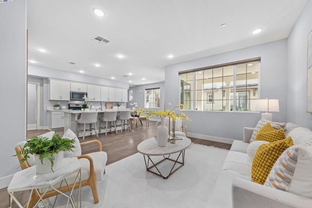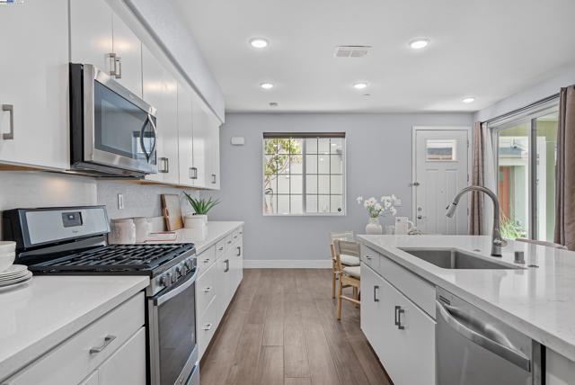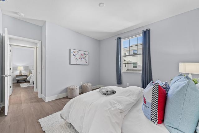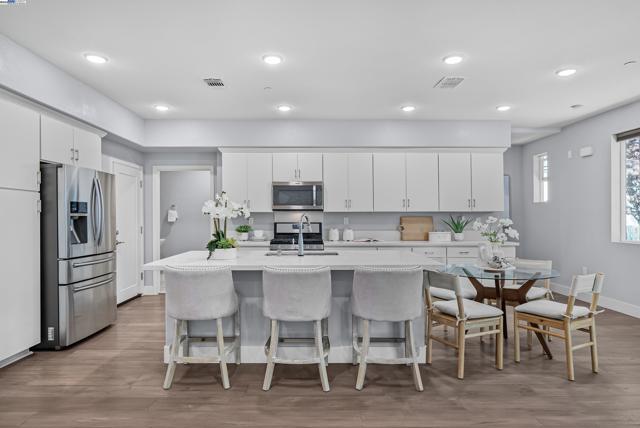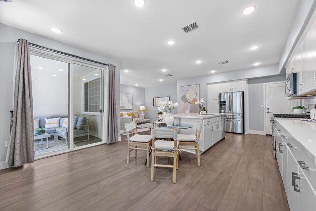 A modern sanctuary at 37553 Shelter Road, Newark, CA—this two-story residence is designed for contemporary living. This stylish home spans 1,566 square foot, offering 3 bedrooms and 2.5 bathrooms. The open-plan layout blends seamlessly the living, dining, and kitchen areas together, ideal for both relaxation and entertaining. The kitchen is a chef's delight, featuring sleek stainless steel appliances, upgraded cabinets, and a stunning Quartz island. Laminate flooring throughout the whole house. Each of the three bedrooms is thoughtfully designed to provide a spacious and comfortable retreat. The primary bedroom serves as a true haven, complete with a customized walk-in closet and an adjacent covered patio, perfect for quiet moments. Additionally, the home boasts a covered deck on the first floor, offering a delightful outdoor space for entertaining or unwinding. There is a side-by-side two-car garage. The community is conveniently located close to Meta and Tesla, among other major employers. Bayshores residents enjoy a host of amenities like a park, kids’ playground and private clubhouse. Nearby Don Edwards San Francisco NationalWildlife Refuge offers open space with trails and nature to explore. Easy access to Dumbarton bridge and I-880.