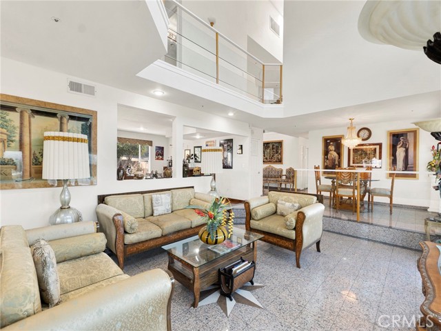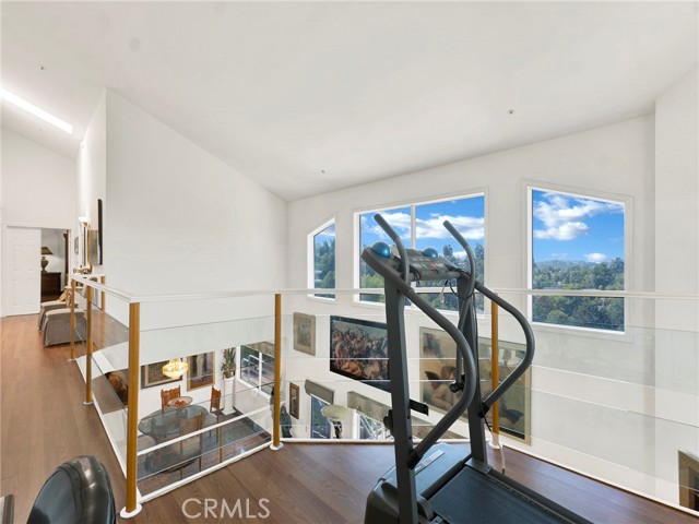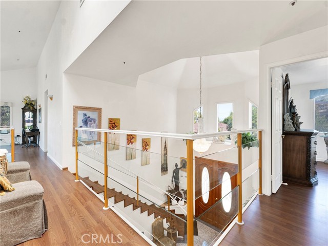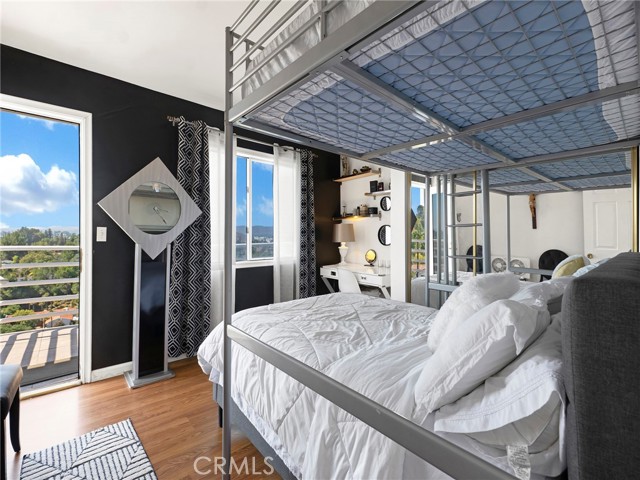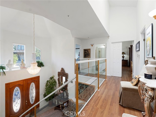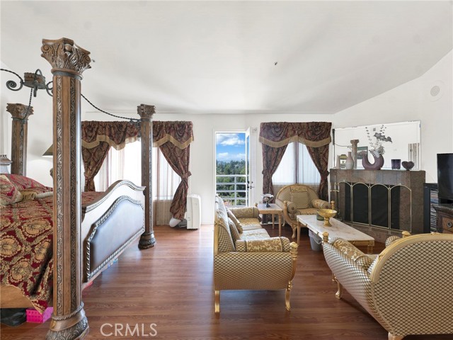 Upstairs, the private retreat showcases a large primary suite with soaring ceilings, dual balconies, fireplace, walk-in closet, and spa-style bath. Four additional bedrooms with high ceilings and four baths offer flexibility for family or guests. The open loft area can serve as a home office. On the lower levels, discover a full-size family/game room with wet bar, a theater room, ample storage, and a separate suite with its own entrance—ideal for extended family, studio, or creative workspace. An unpermitted ADU w/ two bedrooms and a bath, not included in the official count, further expands the home’s potential for rental or multi-unit living.