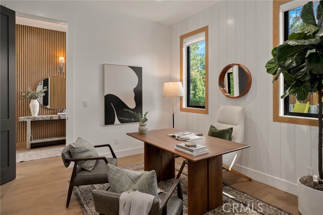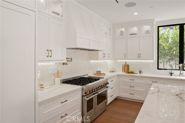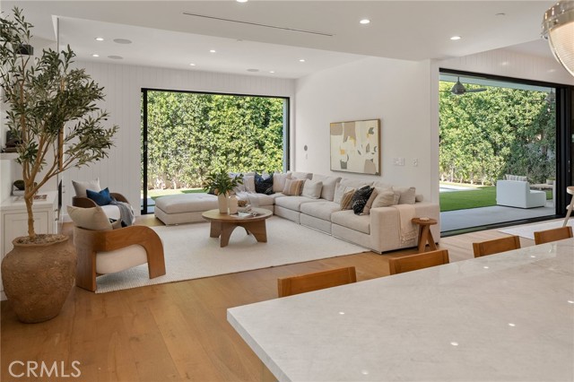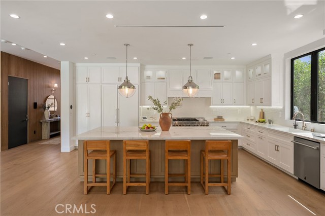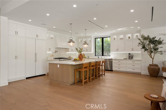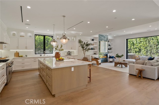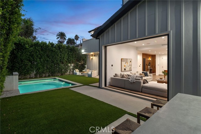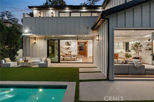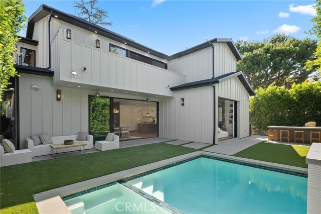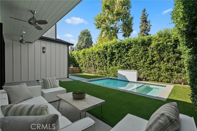 Nestled in the coveted Chandler Estates neighborhood of Sherman Oaks, this newer construction home sits on a gated corner lot, strategically setback from the street to create a private oasis. Designed for modern living, the spacious open-concept main level is anchored by a show-stopping chef’s kitchen equipped with top-of-the-line JennAir appliances and a massive island with seating. Floor-to-ceiling sliding glass doors in both the living room and formal dining room open seamlessly to the backyard, effortlessly extending your living space outside. Step outside to a serene retreat surrounded by mature privacy hedges and highlighted by a heated pool/spa, plus a built-in BBQ with bar seating – the ideal space to entertain or unwind after a long day. The gated front yard also impresses with a built-in fire pit and putting green. Upstairs, four generously sized ensuite bedrooms ensure everyone has their own private retreat, while a dedicated laundry room offers convenience. The sophisticated primary suite features a private balcony, custom walk-in closet and spa-inspired bathroom, complete with a soaking tub, oversized rainfall shower and double vanity. Additional highlights include a main-level ensuite bedroom, high ceilings throughout, water softener system, reverse osmosis with instant hot water and added alkaline, a two-car garage with an EV charger outlet and smart home system with built-in speakers, security cameras, a Nest thermostat and more. Ideally located just moments from Westfield Fashion Square, Ventura Boulevard’s premier shopping and dining, and top private schools including Notre Dame, Harvard-Westlake, and Campbell Hall.