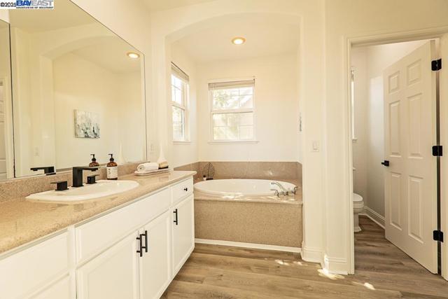 Beautifully Updated Home in Elissagaray Ranch! This spacious 5-bedroom, 4.5-bath home offers over 3,700 sq ft of stylish living space on a 7,516 sq ft lot. Thoughtfully updated with new carpet, luxury vinyl plank (LVP) flooring, and freshly painted interior and exterior, this home seamlessly blends elegance with modern comfort. The grand entry opens to formal living and dining areas, while the open-concept family room features a cozy fireplace and flows seamlessly into the gourmet kitchen—complete with granite slab countertops, stainless steel appliances, large center island, and walk-in pantry. A full bedroom suite on the main floor is ideal for guests or multi-generational living. Upstairs offers a spacious loft/bonus room and a luxurious primary suite with dual vanities, soaking tub, and two walk-in closets. Each bedroom has access to a full bath. Additional highlights include a 3-car garage and a landscaped backyard perfect for relaxing or entertaining. Located in the highly sought-after Elissagaray Ranch community, close to top-rated schools, parks, and commuter routes.