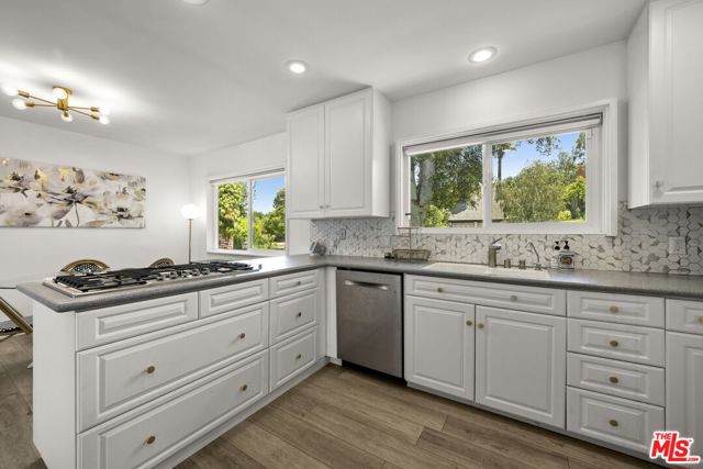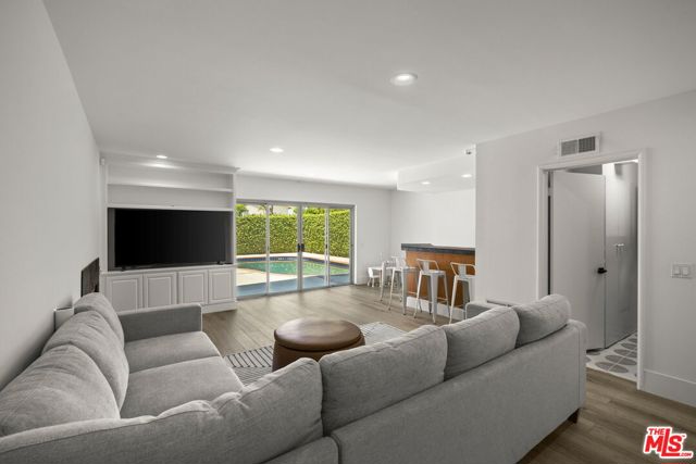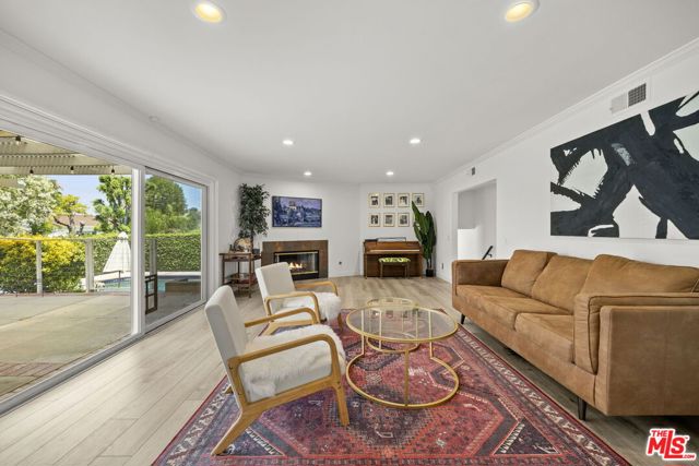 Perfectly situated in a serene cul-de-sac on one of the prestigious and sought-after "Artist Streets" in Woodland Hills, south of Ventura Blvd, this beautifully maintained multi-story residence offers the ultimate in refined living. Boasting 5 spacious bedrooms (5th room is a detached studio), 3 bathrooms, and nearly 2,700 square feet of thoughtfully designed interior space, the home features clean architectural lines, expansive living areas, and a gourmet chef's kitchen ideal for entertaining and everyday living. The dramatic living room is filled with natural light and anchored by a fireplace, while the elegant primary suite offers a peaceful retreat. Multiple fireplaces throughout the home add warmth and character. Downstairs, a generous family room with a stunning wet bar flows seamlessly to the entertainer's backyard, complete with an oversized swimming pool, relaxing spa, al fresco dining area, mature landscaping, and exceptional privacy. A rare and valuable addition to the property is the detached studio, complete with its own HVAC system, perfect for a home office, creative space, or gym. Ideally located just minutes from the Woodland Hills Country Club, Whole Foods, Gelson's, Trader Joe's, top-rated restaurants along Ventura Boulevard, and world-class biking and hiking trails in the Santa Monica Mountains Conservancy. A true one-of-a-kind estate where no detail has been overlooked. This exceptional opportunity won't last long.