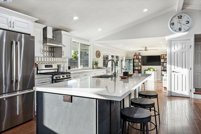 Beautifully remodeled inside and out, this stunning home shows like a model with an open-concept floor plan perfect for entertaining, vaulted living room ceilings with fireplace, separate family room with abundant natural light. Upgrades include newer energy-efficient dual-pane windows, updated electrical and plumbing, paid off solar with 2 batteries, newer HVAC system, and a tankless water heater. The kitchen features elegant quartz countertops, large island, gas stove/oven, stainless steel appliances, two tone modern cabinets and views of the spacious backyard. The primary bath offers a large tiled shower with glass enclosure and heated tile flooring. Additional highlights include wood flooring throughout, motion-sensor lighted closets, epoxy-coated garage flooring, new driveway, and fresh front landscaping. The exceptionally large backyard features a fire pit, new grass, and plenty of open space ready for your personal touch. Conveniently located near downtown Livermore’s vibrant shops, restaurants, and wineries, with easy access to ACE Train and Highway 84 for a smooth Silicon Valley commute.