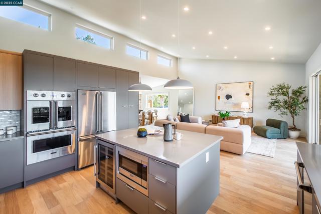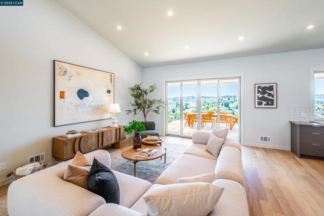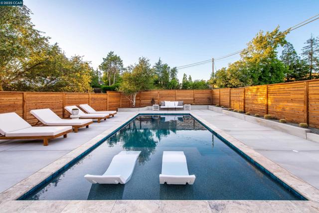 Stunning single-level retreat with panoramic views at the top of Walnut Creek! Nestled in the desirable Hillcroft area, this beautifully remodeled and expanded ranch-style home offers privacy, style, and convenience—just minutes to downtown Walnut Creek, Broadway Plaza, BART, and top-rated Acalanes schools. The light-filled living room features vaulted ceilings, expansive windows, and seamless access to an open-air deck overlooking the valley. The chef’s kitchen boasts a large center island, premium stainless steel appliances, and custom cabinetry. The spacious primary suite includes a spa-like bathroom and walk-in closet. A versatile third room is perfect for a home office, nursery, or guest space. Enjoy engineered hardwood floors, dual-pane windows, and designer finishes throughout. The resort-style backyard features a sparkling pool with baja shelf and a large lawn area ideal for entertaining, play, or pets. Experience the best of Walnut Creek living—luxury, location, and breathtaking views all in one exceptional home.