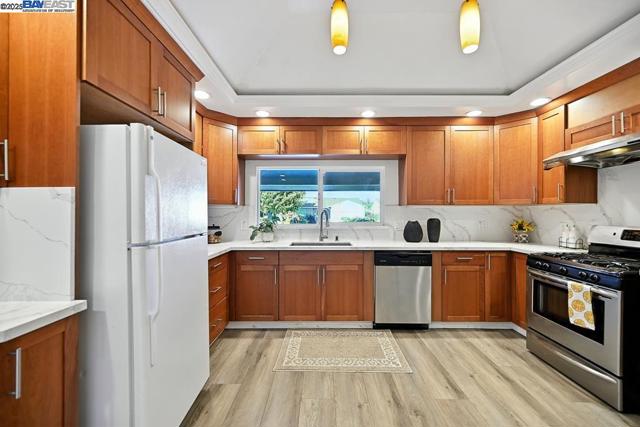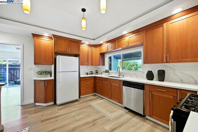 Beautiful two story home located at San Leandro quiet neighborhood, this rarely available two-story residence blends space, comfort, and opportunity. Featuring 5 bedrooms and 3 full baths across 1,784 sq ft, the layout offers flexibility for growing families or multigenerational living. The first floor boasts 3 bedrooms and 2 baths; upstairs, 2 additional bedrooms and another bath provide private retreat options. Step into the sunlit open-concept living room flowing into a generous family-style kitchen—perfect for entertaining guests or quiet nights in. Fresh interior and exterior paint offer a sleek, modern finish. Bonus: Garage has approved ADU permit for a studio unlocks exciting rental potential or a private guest suite. Verify the SqFt of the property with City. Conveniently located minutes from schools, shops, parks, restaurants, post office, and with easy access freeway (880 238 & 580), this is your great opportunity to own it.