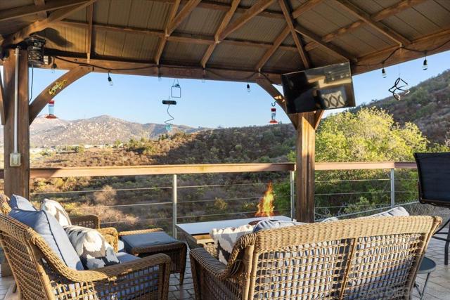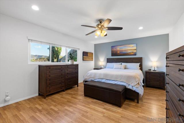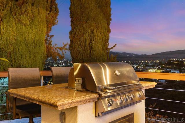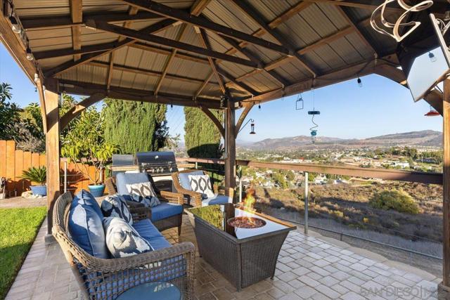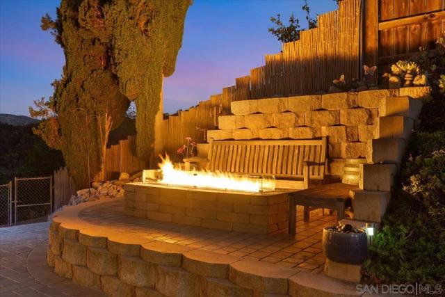 Absolutely immaculate 3 bed/2 bath hilltop home in cul-de-sac location with city lights & mountain views! Highly upgraded throughout. Sellers have taken exceptional care of this canyon home! Remodeled kitchen & bathrooms, flooring, retextured walls & ceilings, paint inside & out, new fascia, rain-gutters, upgraded retaining walls, turf & fencing. A/C & central heat plus gas fireplace w/ new insert in living room. Large primary bedroom offers two closets, one walk-in & one adjacent to bathroom. EZ care landscape & hardscape, spacious outdoor permanent storage building, huge 2 car garage. Boat, trailer and/or potential RV parking space. No through traffic, tiered lots in area make this home a very peaceful, private retreat. There is a main living room in front of home plus an extra flex-space near dining which can be used as a den, game area or a more formal dining room. Back yard is perfect for entertaining with BBQ & three seating areas, two of which overlook the canyon. Spend evenings out by the fire-pit under the stars & enjoy the views or watch your favorite sports under the covered patio. This is the home you've been waiting for. Move right in and LOVE where you live!