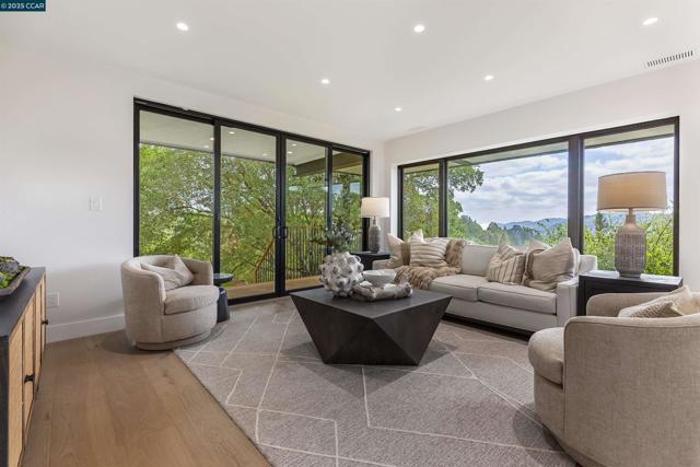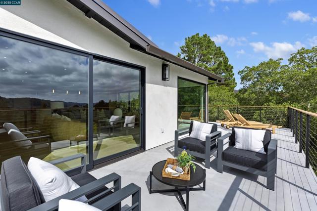 Stunning new construction contemporary with panoramic Mt. Diablo views Elevated California living at its best in this newly built 5-bedroom, 3.5-bath, 3,582 square foot sun-drenched designer home that seamlessly blends modern luxury with quality craftsmanship. Enjoy epic views, including Mt. Diablo, from this .53-acre cul-de-sac lot featuring premium finishes, an open floor plan, and exceptional indoor-outdoor flow to a spacious IPE wood deck with sweeping views and a level yard ideal for outdoor enjoyment and play. The kitchen is outfitted with top-of-the-line Viking appliances, quartzite countertops, and white oak custom cabinetry, opening to the great room with spectacular views. Additional features include an attached two-car garage with EV charger and upscale honeycomb LED custom lighting, a fireproof metal roof with lifetime warranty, Anderson sliding doors and windows, and stucco siding. Nestled in a coveted Orinda neighborhood and close to top-rated K–12 schools, this is a rare opportunity to own brand-new construction with breathtaking views, modern luxury, and sustainable design.