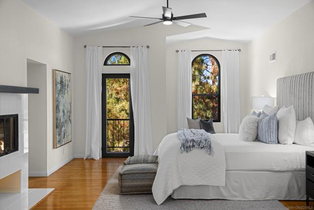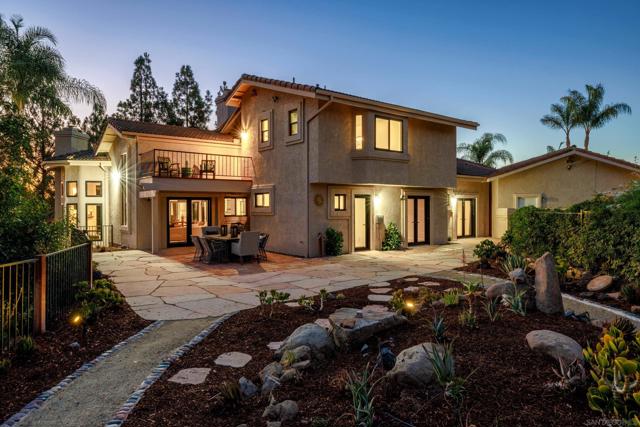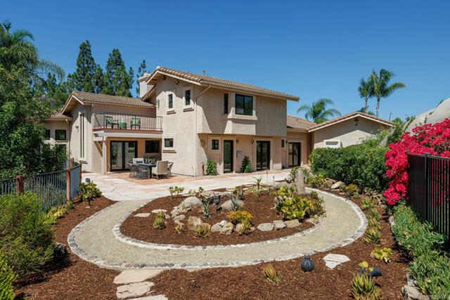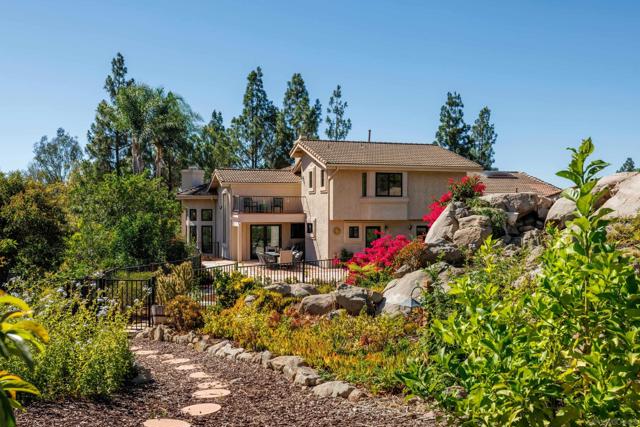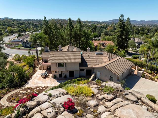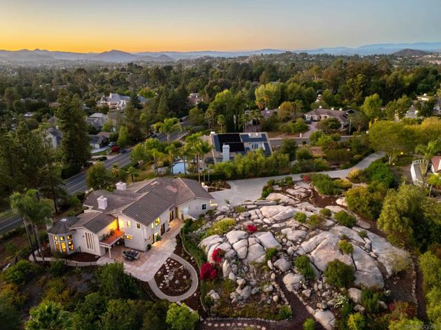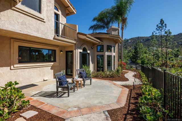 Architectural masterpiece featuring stunning arched windows and immaculate design. Elevated for the ultimate in privacy with gorgeous mountain views. Tucked away in the exclusive enclave of Green Valley Knolls, one of Poways premier neighborhoods, this refined estate offers an elevated lifestyle where luxury meets nature on 1.17 serene acres. Spanning 3,699 square feet, this custom built residence is a private sanctuary. A sweeping stone patio, energy efficient new doors and windows throughout, and a professionally designed landscape plan create the perfect setting for peaceful evenings under glowing skies. Step inside to discover airy, sunlit interiors with rich hardwood and tile flooring, high ceilings, and a seamless indoor outdoor flow. French doors and new windows frame tranquil vistas, while the sophisticated reimagined kitchen featuring a high end oversized quartz island, new induction cooktop, and custom cabinetry anchors the heart of the home. The primary suite offers a true retreat with a cozy fireplace, dual walk in closets, custom built ins, and a private deck ideal for morning coffee or evening stargazing. Four fully remodeled bathrooms showcase quartz countertops, new vanities, upgraded lighting, and beautifully tiled showers, blending luxury with timeless design. Located within the award winning Poway Unified School District. Architectural masterpiece featuring stunning arched windows and immaculate design. Elevated for the ultimate in privacy with gorgeous mountain views. Tucked away in the exclusive enclave of Green Valley Knolls, one of Poways premier neighborhoods, this refined estate offers an elevated lifestyle where luxury meets nature on 1.17 serene acres. Spanning 3,699 square feet, this custom built residence is a private sanctuary. A sweeping stone patio, energy efficient new doors and windows throughout, and a professionally designed landscape plan create the perfect setting for peaceful evenings under glowing skies. Step inside to discover airy, sunlit interiors with rich hardwood and tile flooring, high ceilings, and a seamless indoor outdoor flow. French doors and new windows frame tranquil vistas, while the sophisticated reimagined kitchen featuring a high end oversized quartz island, new induction cooktop, and custom cabinetry anchors the heart of the home. The primary suite offers a true retreat with a cozy fireplace, dual walk in closets, custom built ins, and a private deck ideal for morning coffee or evening stargazing. Four fully remodeled bathrooms showcase quartz countertops, new vanities, upgraded lighting, and beautifully tiled showers, blending luxury with timeless design. Located within the award winning Poway Unified School District.