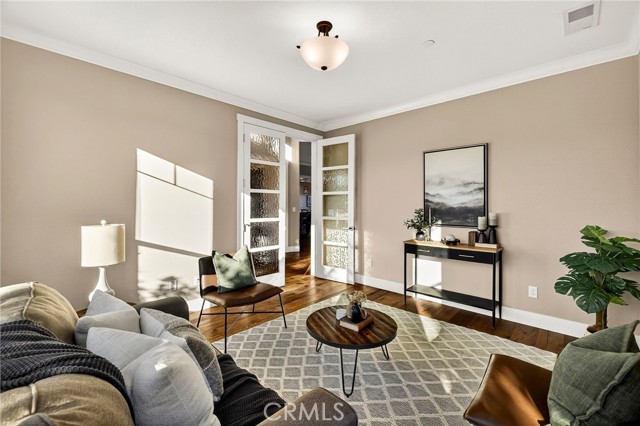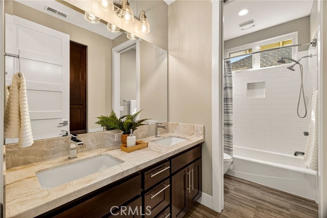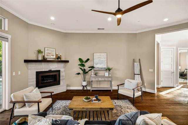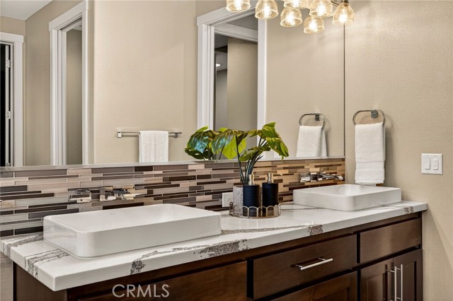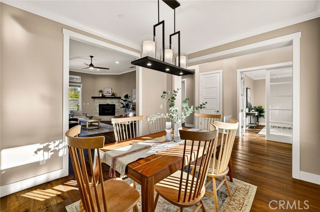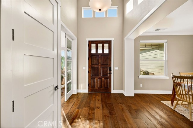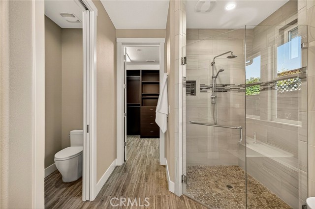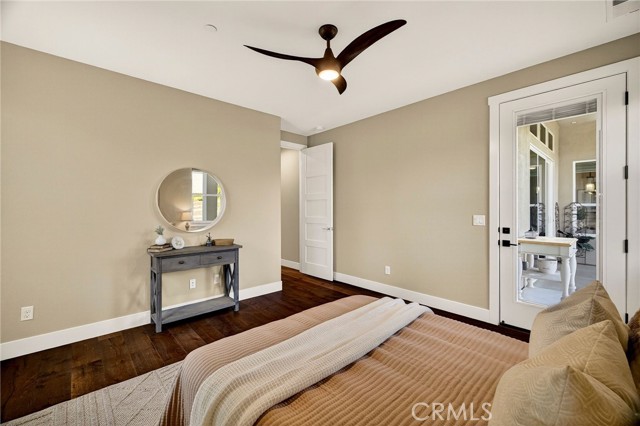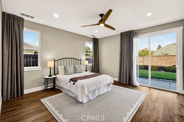Enjoy the charm of upgraded hand-hewn hardwood floors throughout and 8' solid core interior doors that add a sense of grandeur and quality to every room. The Master suite is a true retreat with private entry door, separate bedroom and bathroom doors to not wake your sleeping partner if you wake up earlier than them, & patio access. The luxurious en-suite bath featuring a soaking tub, dual sink vanity, a walk-in tile shower, and a custom-built walk-in closet.