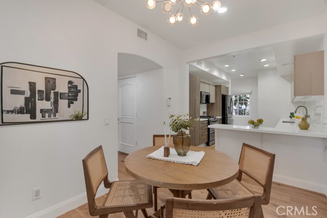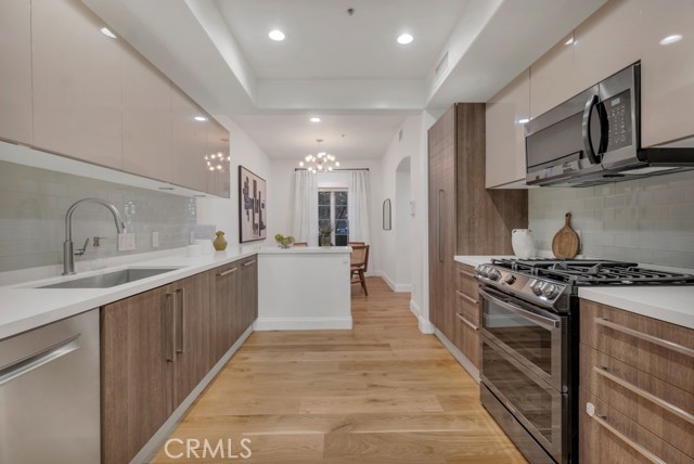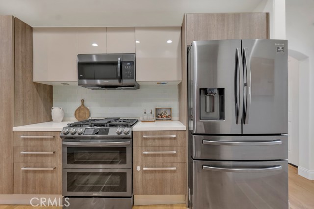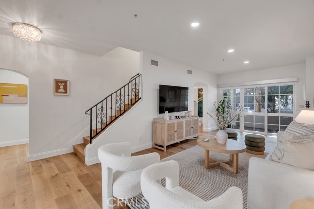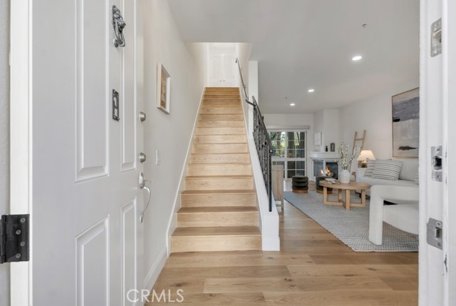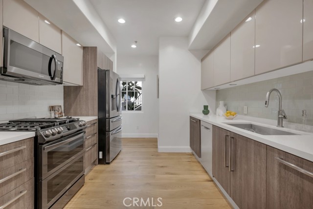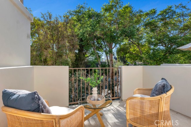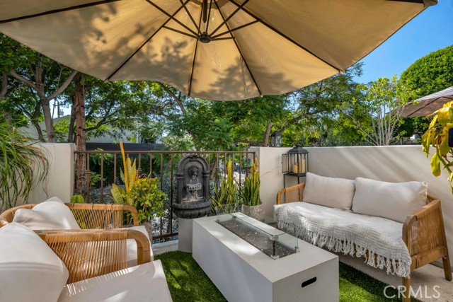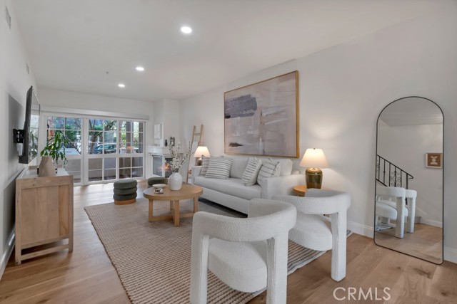 Rare walk-up townhouse in the heart of West Hollywood’s coveted Norma Triangle featuring a private entrance off Hilldale Avenue. This light-filled home offers an open floor plan with soaring ceilings, a gas fireplace, and a large sliding glass door leading to your private patio surrounded by greenery. The Italian kitchen by DOMUS CUCINE showcases custom cabinetry, Caesarstone countertops with a breakfast bar, subway tile backsplash, and newer Samsung fingerprint-resistant appliances. The spacious dining area is framed by a large picture window that fills the space with natural light. Upstairs, dual primary suites each feature en-suite baths with stone walk-in showers and soaking tubs, walk-in closets, and private terraces. Additional highlights include side-by-side subterranean parking, dual entrances, and central heat and A/C.