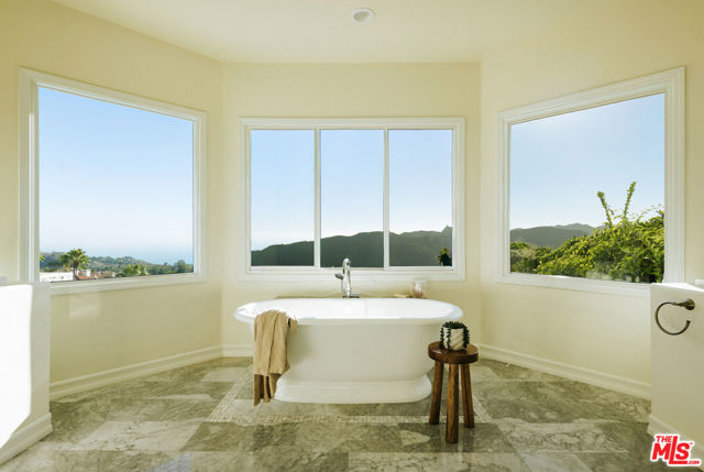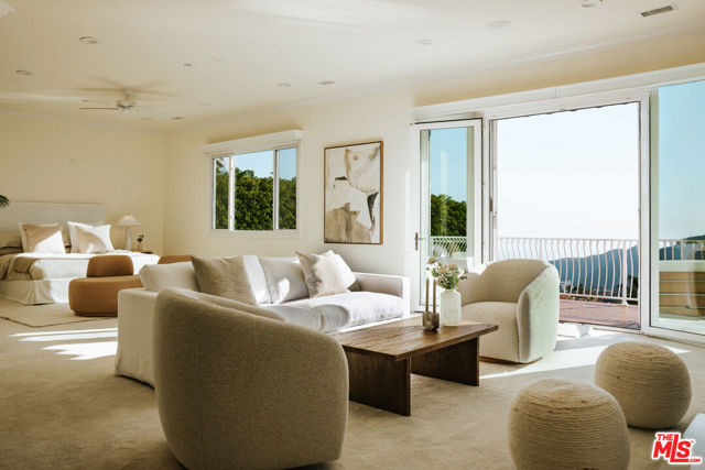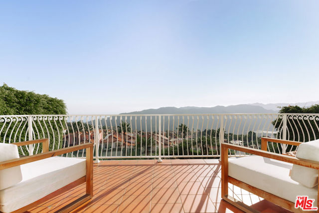 Experience serenity and sweeping views within the prestigious guard-gated Summit Enclave in the Highlands of Pacific Palisades. Set on a coveted front-row position along Calle De Sarah, this exceptional estate offers unobstructed ocean and mountain vistas, along with the picturesque terracotta rooftops of The Summit neighborhood below. Beautifully updated where it matters most, this Palisades retreat combines an open-concept design with defined, inviting living spaces. The gracious foyer flows seamlessly into a well-appointed kitchen, an oversized family room, and an impressive great room with remarkable scale and volume. Abundant natural light fills the home throughout the day, enhanced by oversized windows and French doors that create a sense of openness and connection to the outdoors. A secluded en-suite bedroom on the main level provides flexibility for guests or family use. Upstairs, a wide staircase leads to a comfortable landing connecting three spacious en-suites, each offering exceptional light and privacy. The expansive primary suite is a true sanctuary, featuring a cozy fireplace, generous sitting area, large walk-in closet, bright spa-like bathroom, and a private balcony the perfect spot to take in breathtaking sunsets over the hills. A spacious and tranquil office provides the ideal environment for work or creativity; stunning wood detailing, custom built-ins, and abundant natural light make this room as functional as it is beautiful a refined space that blends comfort and focus. The outdoor spaces are equally impressive, ideal for both relaxation and entertaining. Enjoy a covered patio, built-in BBQ kitchen, pool, jacuzzi, lush lawn, mature landscaping, and an elevated sun deck for lounging. Residents also enjoy access to The Summit Club's world-class amenities, including a resort-style lap pool and spa, tennis and pickleball courts, fitness center, basketball court, children's playground, and expansive grassy park. A nearby private dog park with an additional play area completes this exceptional offering. With its magical setting and wealth of luxury amenities, this home truly defines extraordinary coastal living in Pacific Palisades.