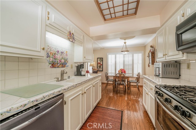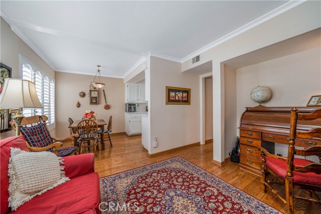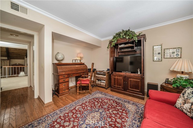 Welcome to this spacious tri-level, light-filled “End Unit” townhome, beautifully located within the highly sought-after Studio Village complex with a large greenbelt pool and spa very near the unit. A gated and walled, private brick garden patio serves as the entrance to a split-level floor plan, opening to a living room with soaring cathedral-beamed ceilings, a floor-to-ceiling south-facing window featuring gorgeous frosted stained-glass insets, a natural brick fireplace and hearth, and sliding doors leading to the private patio for BBQing and entertaining. The large dining area visible from the living room includes a wet bar with storage cabinets and connects to a bright galley kitchen featuring stainless steel appliances, custom tile countertops and backsplash, and a charming breakfast area connected to a family room/den (possible 3rd bedroom) with the addition of a wall, and an adjacent 3/4 guest bath and storage closet. Upstairs, two generously sized en-suite bedrooms feature large, screened picture windows, bathrooms, and walk-in closets. The primary bedroom features a fantastic window seat and an extra-large walk-in closet. A private direct-access two-car garage has two walls of built-in storage cabinets and a laundry area. The HOA includes earthquake insurance, on-site management, security patrol, landscape maintenance, cable TV/internet, water, and access to incredible amenities, including six heated pools, five spas, tennis & pickleball courts, and more. Located in the coveted Carpenter Community Charter School district and near Tujunga Village, Woodbridge Park, Ventura Blvds trendy shops, cafes, and the Sunday Farmers Market, this townhome truly is a rare find in a fantastic community.