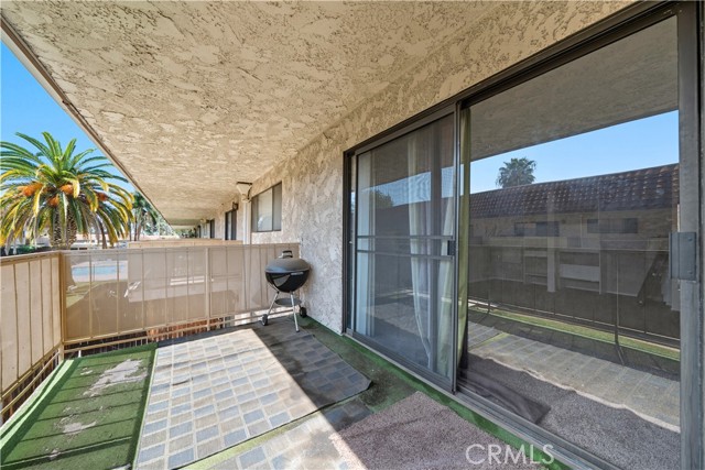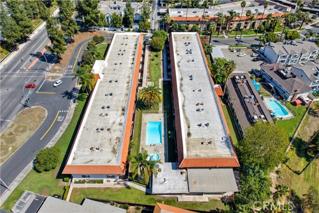Beautifully Upgraded Top-Floor Condo Near UCR! Welcome to this beautifully upgraded 2-bedroom, 2-bathroom condo in the highly desirable Country Club Villas community. This top-floor residence offers a bright and spacious great room layout with elevator access and a private balcony overlooking the sparkling pool and spa. The open-concept kitchen features Corian countertops, light-stained cabinetry, and stainless-steel appliances including a gas range, dishwasher, and sink. A convenient dining area flows seamlessly into the living space—perfect for entertaining or relaxing at home. The living area also includes a convenient wet bar, ideal for hosting guests or enjoying evening refreshments.