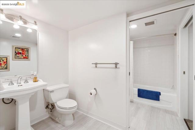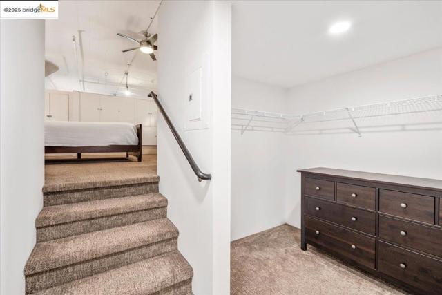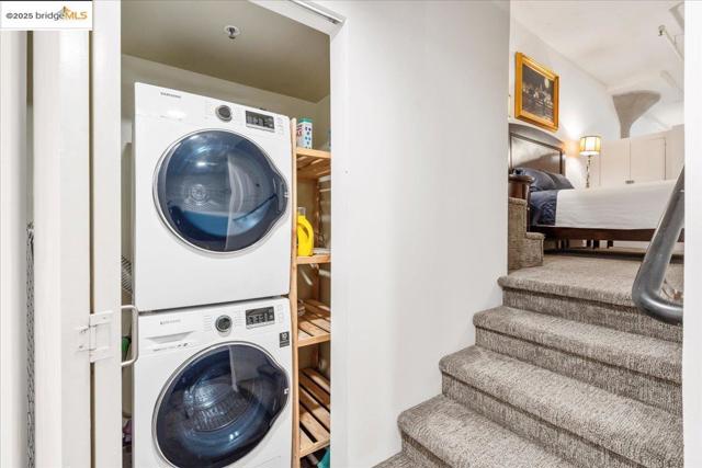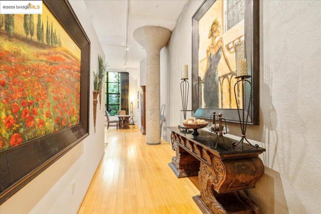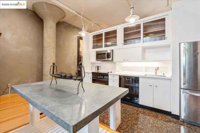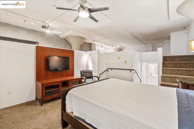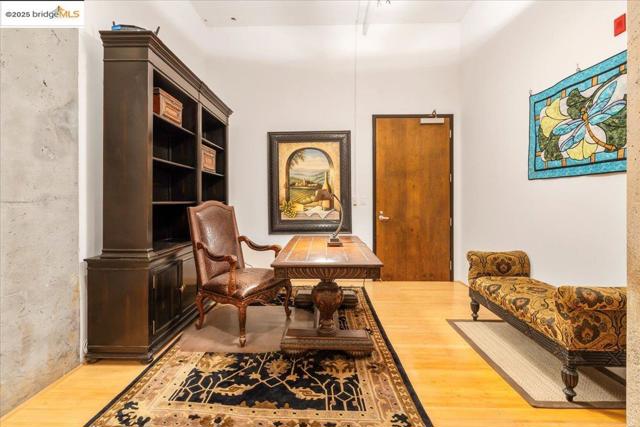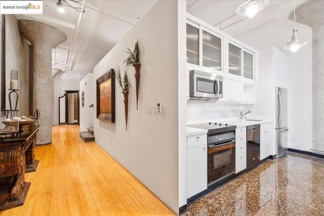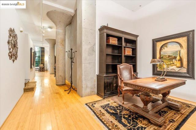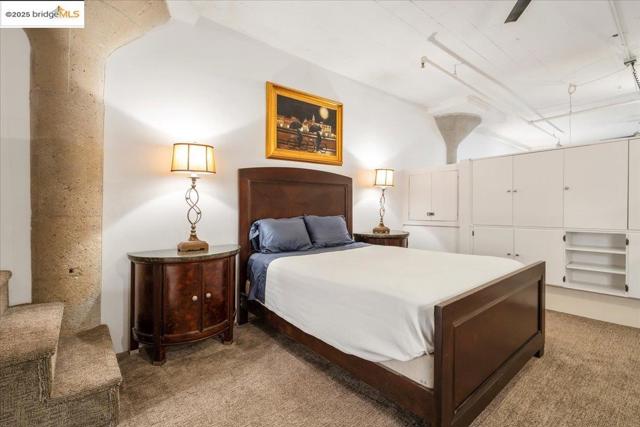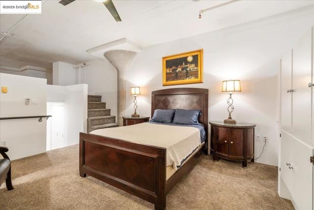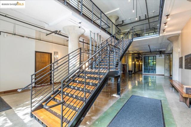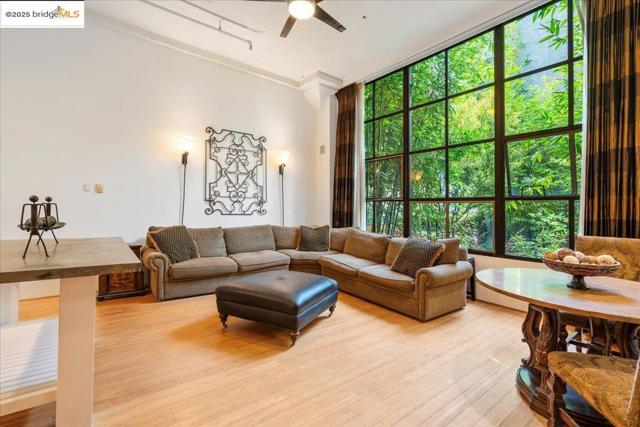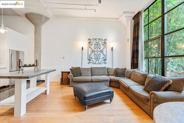 Welcome to the iconic 1500 Park Avenue Lofts, Emeryville’s premier warehouse conversion where industrial charm and modern sophistication meet. This stunning 1-bedroom, 1-bath ground floor (no steps to entry) loft blends soaring ceilings, exposed concrete, and expansive windows with warm natural light and sleek contemporary finishes. The open floor plan is ideal for entertaining, featuring a chef’s kitchen, spacious living area, and a dramatic mezzanine suite overlooking the main level. Designed for flexible living or creative work, this home offers both functionality and style. Enjoy two full bathrooms, in-unit laundry, and secure garage parking. The building features a serene landscaped courtyard with a waterfall wall, rooftop deck with city views, intercom entry, and elevator access. Perfectly situated in the heart of Emeryville near Bay Street shops, cafes, and entertainment. Minutes to BART, the Emery Go-Round shuttle, Pixar, and freeway access to San Francisco and Berkeley. Vibrant urban living at its best!