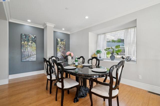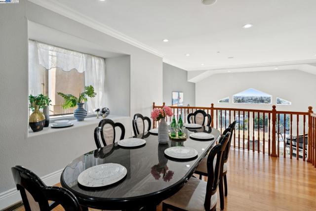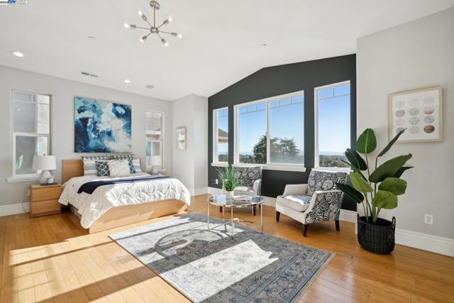 Custom built 5-bedroom home with in-law unit in Toler Heights with panoramic bay views from almost all rooms in this multi-level home. The main house features a grand living and formal dining room. 2 en-suite, a primary suite with balcony enjoying the bay view and two spacious rooms shared by jack-and-jill bath. Gourmet kitchen with island across from family room. Extra High cathedral ceilings. The in-law unit (approx. 600 sq/ft) has a separate entrance, living area, bath and kitchenette. Inside laundry room. 2 spacious car garage and a flex/game room. Conveniently located near schools (Bishop O’Dowd HS & Barack Obama Academy), King Estate Park & Oakland Zoo. Enjoy easy access to the 580 freeway & BART.