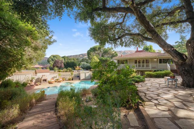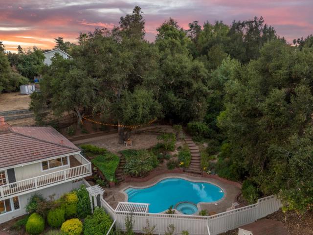 Nestled in the highly desirable Holiday Lake Estates of Morgan Hill, this spacious 5-bedroom, 3-bath home offers over 3,000 sq. ft. of living space on a generous 0.62-acre lot. Designed with both comfort and entertaining in mind, the open floor plan features multiple gathering areas, a bright modern kitchen, and expansive windows that frame hillside views while flooding the home with natural light. A distinctive touch: the kitchen/dining area includes its own fireplace, creating a warm and inviting atmosphere for family meals and gatherings. The versatile downstairs suite with its own bedroom, bathroom, and living room provides a perfect setup for a nanny, multigenerational living, or a private hangout for kids and guests. Step outside to your own backyard retreat. A sparkling pool and soothing hot tub make summer days and starlit evenings equally inviting, while mature landscaping ensures privacy. The expansive patio offers plenty of space for outdoor dining, play, and relaxation. For those who value sustainability, the property includes a chicken coop with a fenced run and fruit trees, featuring apple, Asian pear, orange, lemon, and grapefruit.