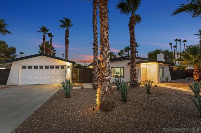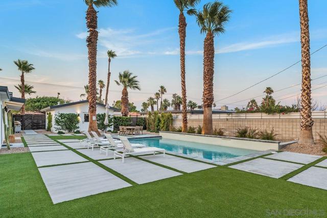 Experience the best of Palm Springs in this remodeled, fully furnished mid-century modern gem! Located in Desert Park Estates on an expansive lot with stunning mountain views, this home offers fully owned SunPower solar panels with a transferable 25-year warranty. Inside, bright and airy spaces are complemented by a chic bonus room with a moody, elegant vibe. The kitchen, bedrooms, and baths all feature stylish modern finishes. Step outside to a private resort-style backyard with multiple patios, a sparkling pool, spa, and oversized firepit—perfect for relaxing under the desert sun. A detached two-car garage provides ample workspace and laundry hookups. Conveniently located just 10 minutes from downtown Palm Springs and the airport, with easy access to Coachella Valley and Joshua Tree adventures!