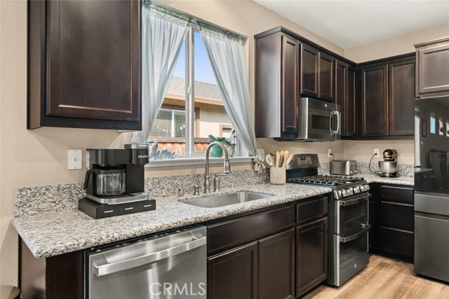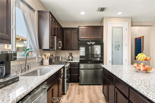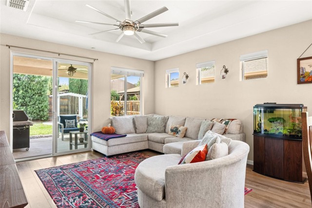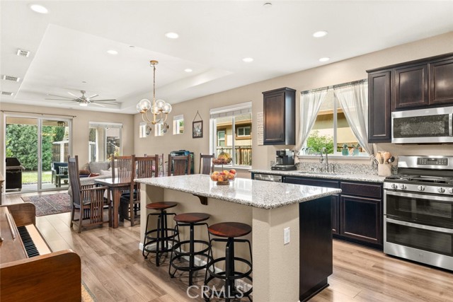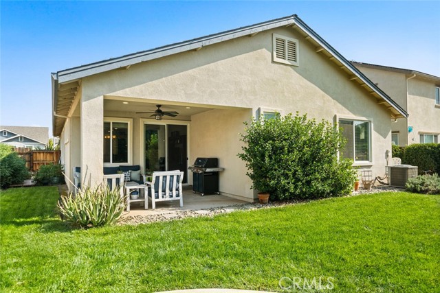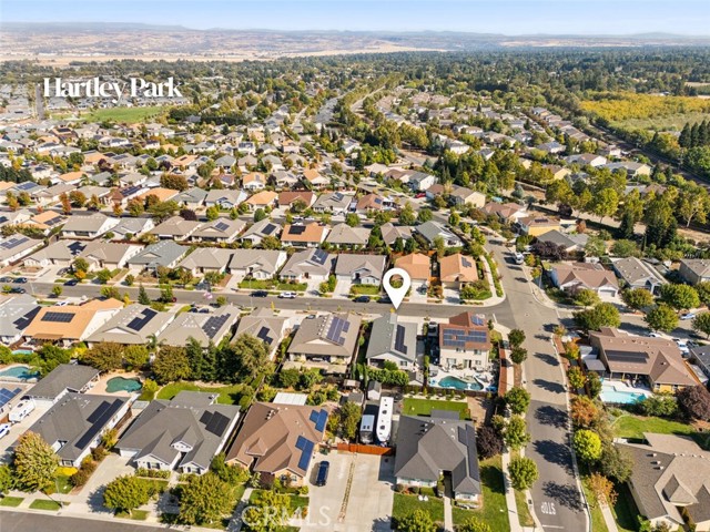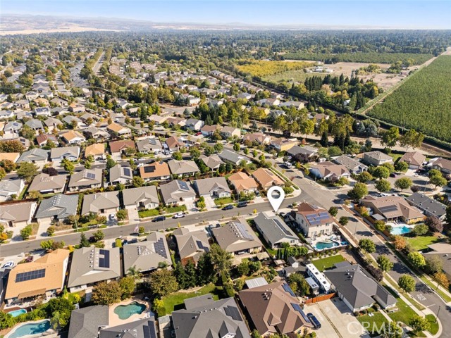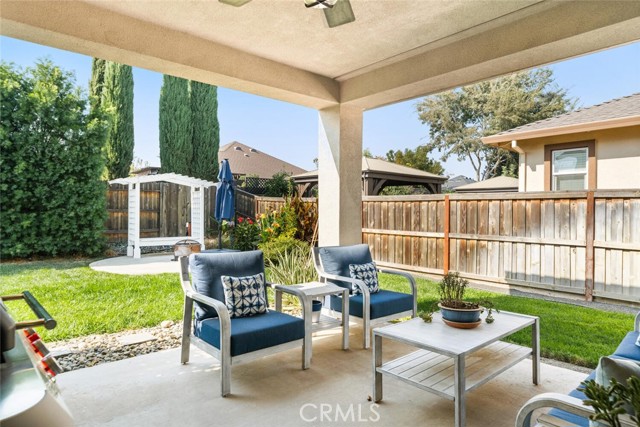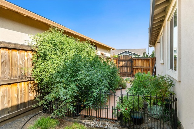 This newer North Chico home is move-in ready and offers great curb appeal with a custom wood-look garage door, a charming blue front door, and mature landscaping. The extra-wide driveway and side double-gates provide ample parking options, including potential for RV, smaller boat, or trailer storage. Inside, you'll find LVP plank flooring and an open floor plan that feels light and bright, thanks to high ceilings and numerous windows. The kitchen features an island, granite countertops, stainless steel appliances—including a new dishwasher and a 5-burner gas range with grill and dual ovens. A custom wall mural inspired by the Ahwahnee Hotel in Yosemite and warm wainscot paneling add a cozy, inviting touch. The home has four bedrooms: the primary and two others are adjacent, while the front bedroom with a built-in Murphy bed makes a versatile office or guest room with privacy. The backyard is truly delightful, offering a lush green lawn, covered patio with lighting and fan, a firepit area, accent lighting at night and two usable side yards. One side yard includes a vegetable garden with raised beds and a new Trex-style deck walkway, while the other provides concrete space perfect for an RV or kids’ play area. This well-loved home is ready for its new owners—and it’s sure to be a place you'll love too!