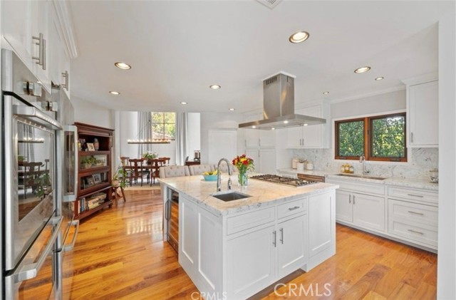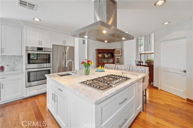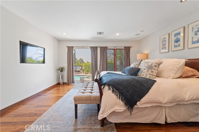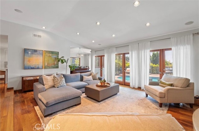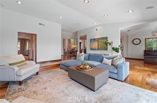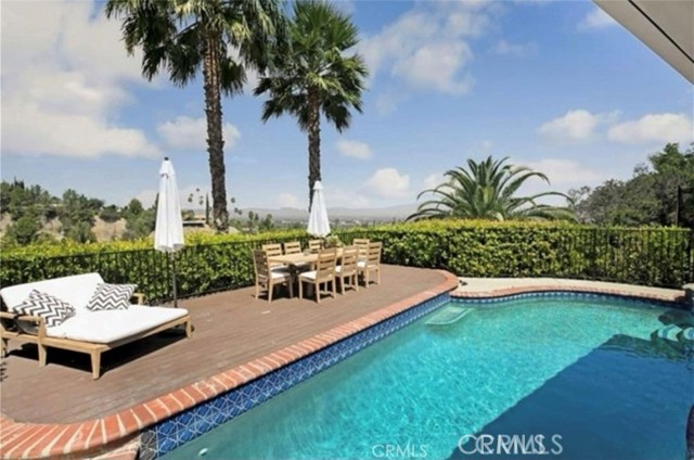 VIEWS,VIEWS, VIEWS, POOL HOUSE Located SOUTH of Ventura Blvd (Cul-de-sac) in one of Encino’s most desirable hillside neighborhoods, this SINGLE STORY modern retreat offers privacy, serenity, and breathtaking city views. Situated on a quiet cul-de-sac, the property is centrally located yet feels worlds away. Behind the gates, you’ll find a turn-key residence with high ceilings, abundant natural light, and seamless indoor-outdoor flow. The beautifully remodeled kitchen features a large center island, custom cabinetry, premium appliances, and a breakfast nook overlooking the backyard oasis. The formal dining room boasts soaring cathedral ceilings, perfect for hosting gatherings. The spacious primary suite opens to lush views of the pool and hills, complete with a walk-in closet and spa-like bath. Additional bedrooms are well-appointed and filled with light. A huge bonus space offers endless potential ideal for a home office, media room, or easily convertible into an ADU or additional 4th bedroom. Step outside to your private paradise: a sparkling pool, multiple lounging areas, and a tranquil backdrop of city lights. Perfect for entertaining or unwinding, this home blends comfort, style, and location in one exceptional package. A rare opportunity to own a gated, view-filled, modern home in the Encino Hills ready to move in and enjoy. Within Minutes to 101, Award winning Schools and Fine Dining