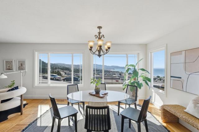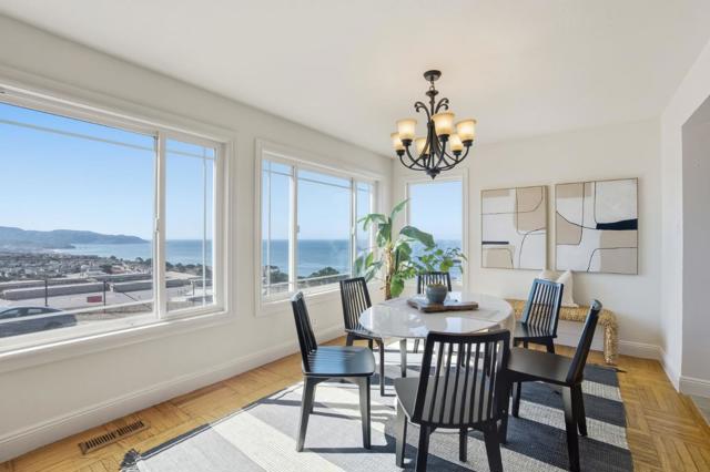 Welcome to your Daly City retreat with Sweeping Views of the Pacific and Pacifica's Coastline. This 4 bedroom, 3 bath home is filled with Natural Sunlight and Classic Coastal Charm. The main level features parquet floors, three bedrooms and two baths, and an open layout that connects the kitchen, dining, and living area. This bright, airy space is perfect for your relaxed everyday living or entertaining. Downstairs offers one bedroom, one bath, and a family room, ideal for guests, a home office, or cozy movie nights. The two car garage adds convenience and storage. Just minutes from San Francisco, Serramonte, Westlake shopping, and neighborhood dining, with quick access to Skyline Boulevard, Highway 35, and 280 for an easy commute. Spend your weekends hiking Mussel Rock Park Trail or Cruising along the Pacific Coast Surf Towns to Catch Waves and Sunsets. Move-in ready and Sun-filled, with room to add your own touches, this home delivers the Best of Coastal Living and City Convenience!