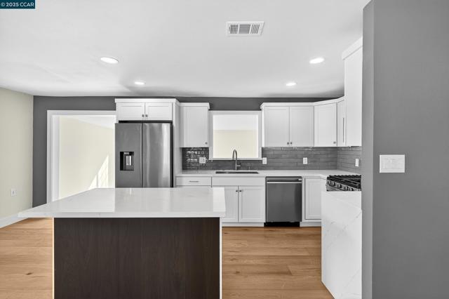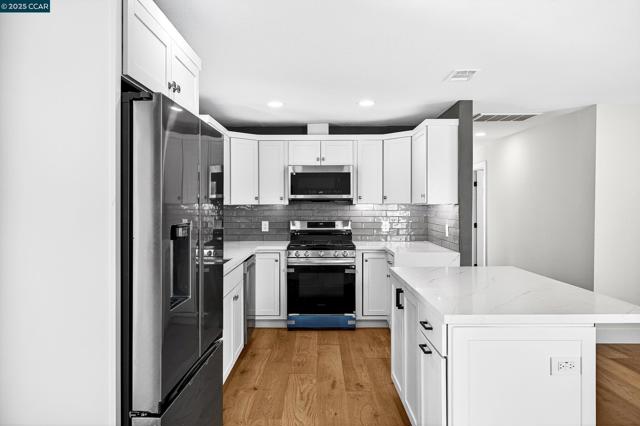 Modern Living with Style & Expansive Lot!! Discover refined single-story living in this tastefully Remodeled: 3 Bedroom & 2 Baths Home set on a generous 9,800 sq.ft. lot with serene views!! The custom-designed modern kitchen showcases stone countertops, sleek tile backsplash, and premium new appliances, ideal for both everyday living & entertaining. Throughout the home, wide-plank wood flooring, recessed lighting, and dual-pane windows create a warm, sophisticated atmosphere. Spa-inspired bathrooms feature artfully crafted stonework on the shower and tub walls, adding luxury to daily routines. Fresh interior & exterior paint, along with a spacious 2-car garage, central heating & AC system, complete this move-in-ready property. A rare opportunity to own a thoughtfully upgraded home with style, comfort, and curb appeal!!